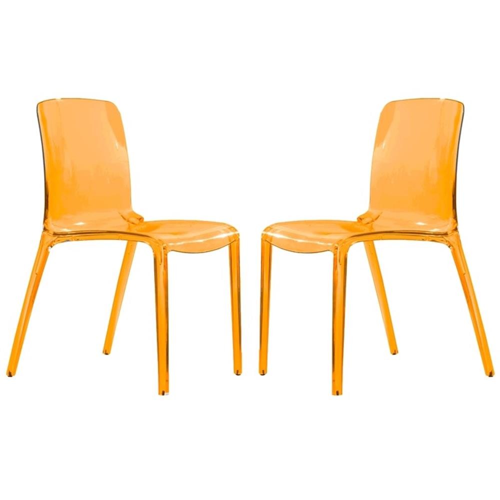 Have you ever seen a design so exquisite that it leaves you in an absolute fog? With the see-through clean style of the Murray Dining Chair in your modern dining room, you’ll be struck into a daze by its modernity and simplicity in design every time you walk by. Made of clear plastic, the chair has an extremely sturdy construction, ensuring durability. It is conveniently stackable for when you need to put it in storage or just sweep the floor. The clear style of the chair is extremely versatile and works like a dream with essentially every room setting. Sold in a variety of colors, the options are abundant. Mixing and matching chairs in an entertainment area is a playful set-up and a great conversation starter. A striking color to add to a dining area is a terrific accent touch. The clear-colored chair is already perfect as an addition to a variety of spaces. However you choose to place The Murray Dining Chair, it is sure to be that perfect touch of modern simplicity to your contemporary space. Features: Constructed of strong Plastic material Single mold injection Plastic non-marking feet to prevent scratching Stackable Suitable for indoor or outdoor use Lightweight Specifications: Product Color: Transparent Orange Seat Dimensions: 17.9" H x 17.1" W x 17" D Chair Weight: 11 lbs Chair Weight Capacity: 275 lbs Product Dimensions: 32.25" H x 20.5" W x 21" D