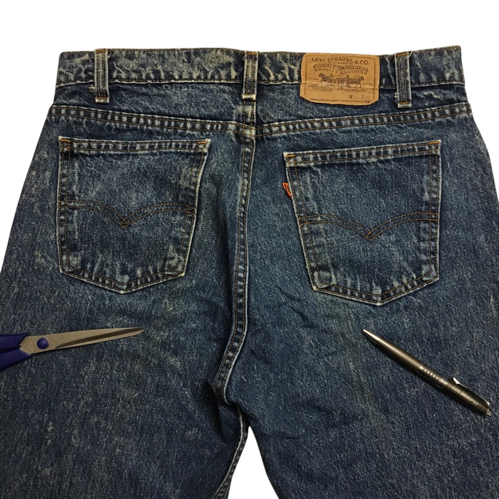 🔴 HELLO THE WAIST TAG SHOWS W34 L32 . THE ACTUAL SIZE MEASUREMENTS IS 32x31 🔴THE JEANS IS ALSO DIRTY PLEASE SEE LAST PHOTO THANK YOU This vintage pair of Levi's 90's Orange Tab 40505-0212 jeans features a stylish acid wash denim fabric with a mid-rise fit and a straight leg style. The jeans have a classic 5-pocket design with a zip closure and button accents, showcasing the iconic Levi's logo. Made in the United States, these jeans are perfect for the modern cowboy theme and offer comfort and functionality with a 32-inch waist and 31-inch inseam. The timeless appeal of these Levi's jeans makes them a must-have for any denim enthusiast.