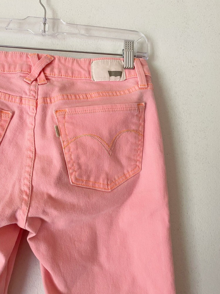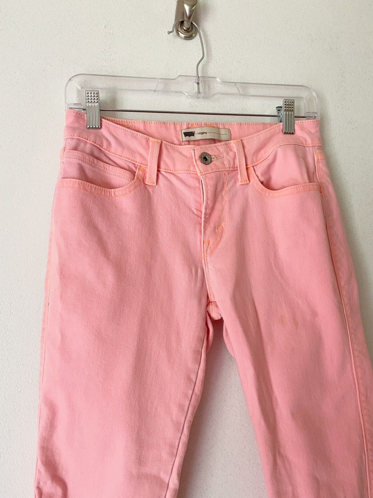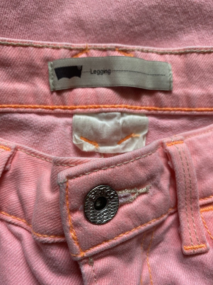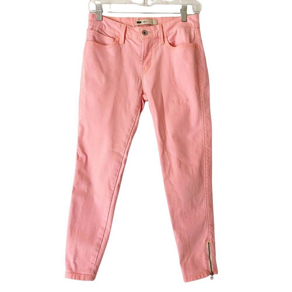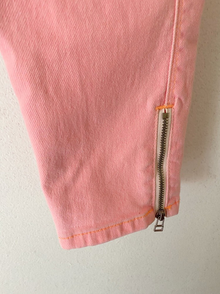 Levi’s Sherbert Orange Mid Rise Moto Zip Denim Skinny Jean Leggings. Traditional five pocket design with fun functional zips at the ankles. Stretchy, comfortable and cropped. Women’s size 28 These do have some wash wear present and some light staining around the upper left hip. Measurements Waist 14” Rise 8” Inseam 24” *All preowned items have been washed and/or steamed cleaned per manufacturer standards. New with tags items are steamed as needed*