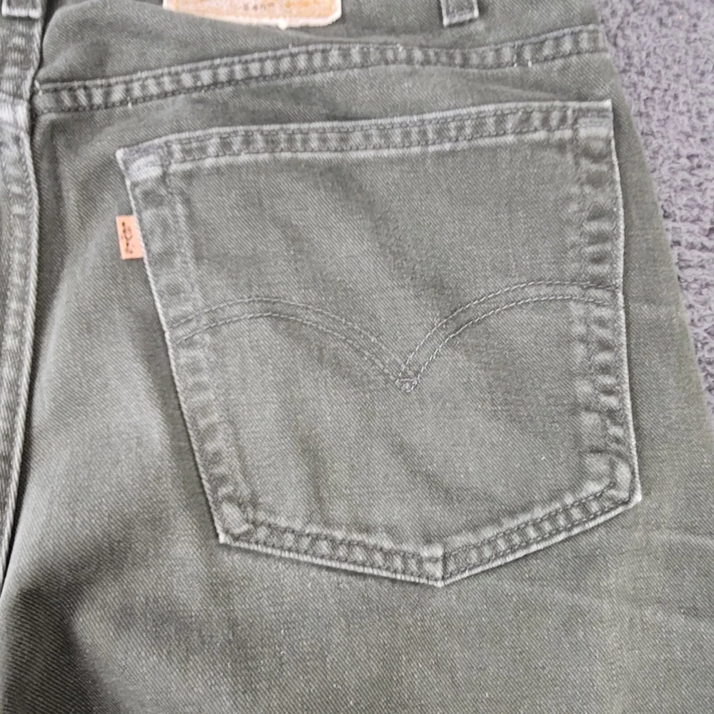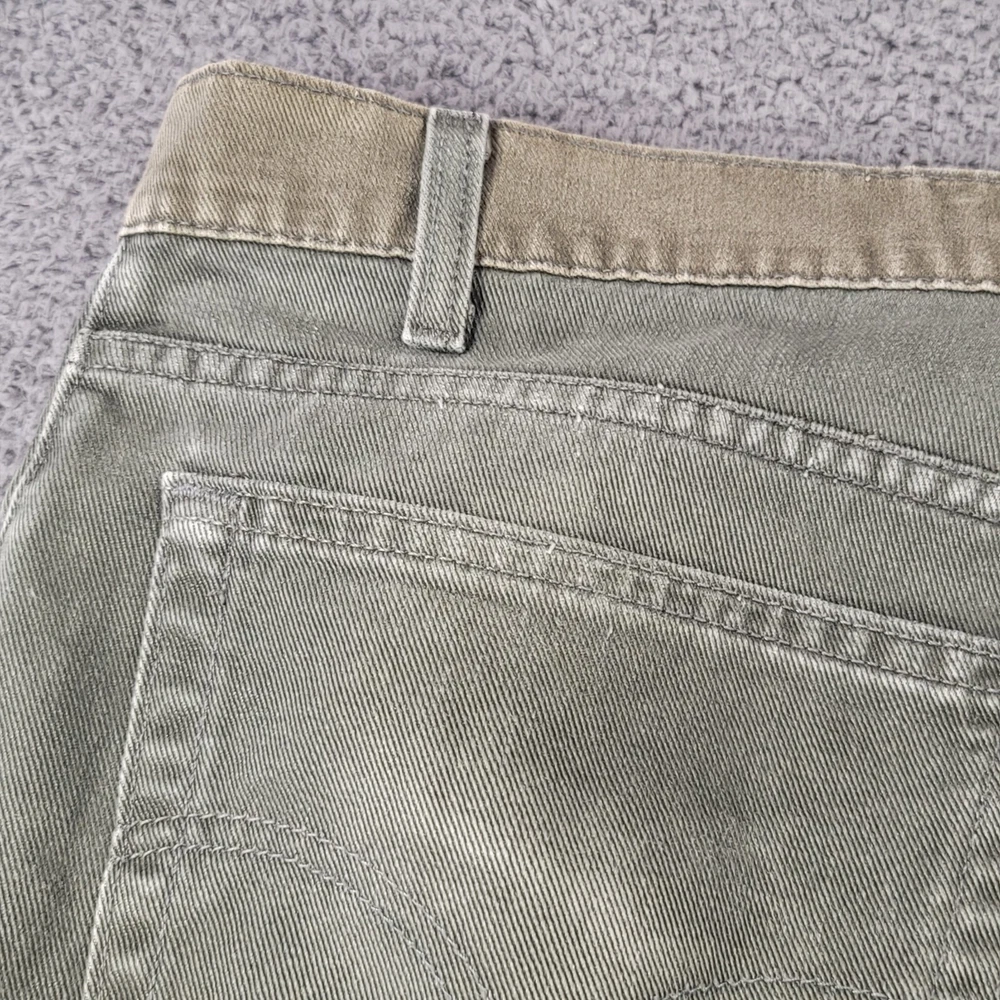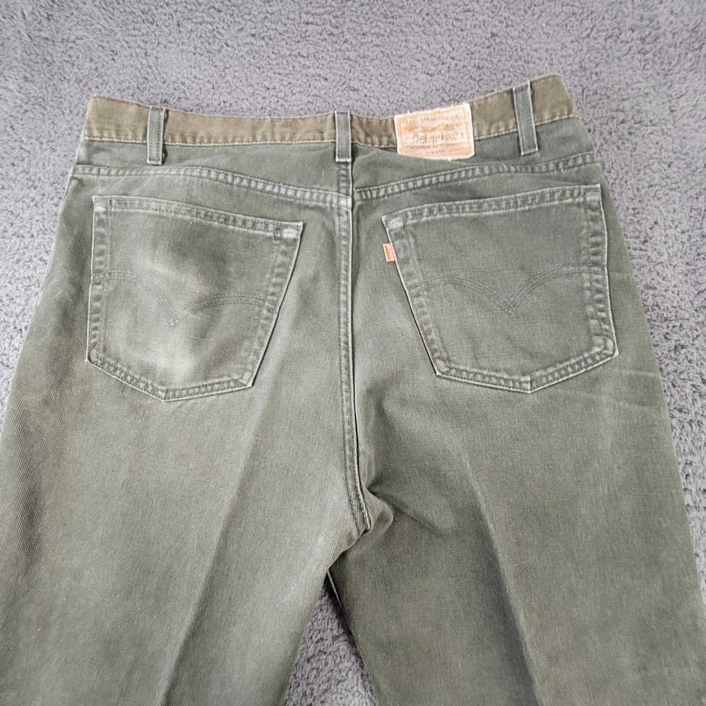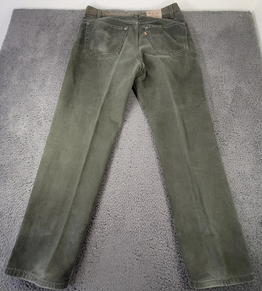 Experience the classic and timeless style of these Levi's Strauss Signature jeans in green and orange. Made from 100% cotton denim fabric, these pre-owned jeans are perfect for the vintage enthusiast. Featuring a solid pattern, button closure, and classic rise, these jeans offer a comfortable fit and a straight leg style that is suitable for any occasion. With a waist size of 40 inches and an inseam of 32 inches, these jeans are sure to fit any regular size man. The orange tag accents add a touch of flair to this vintage piece. Made in the USA, these jeans are a perfect representation of the American style. Enhance your wardrobe with these classic jeans today. Condition is pre-owned, they look good overall, and fast shipping is available today!