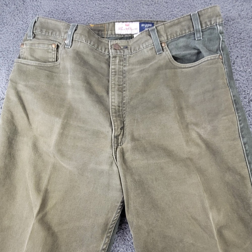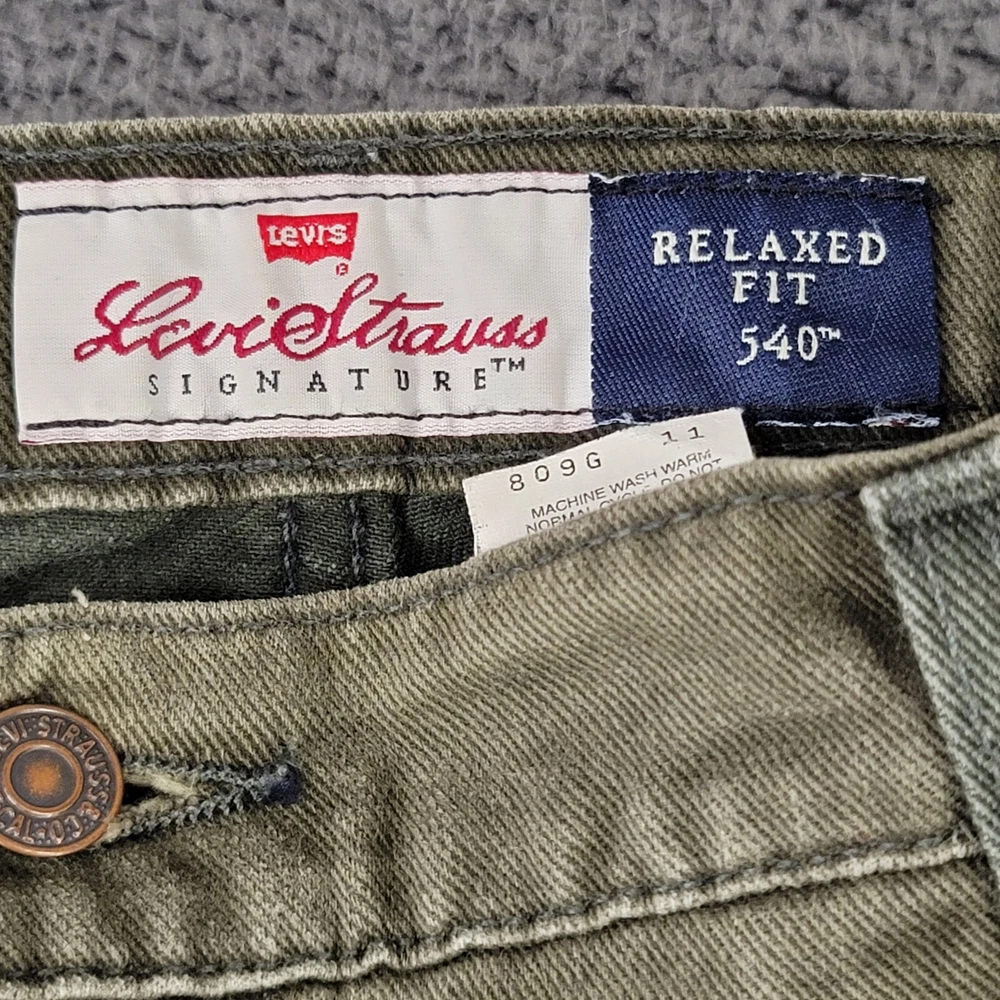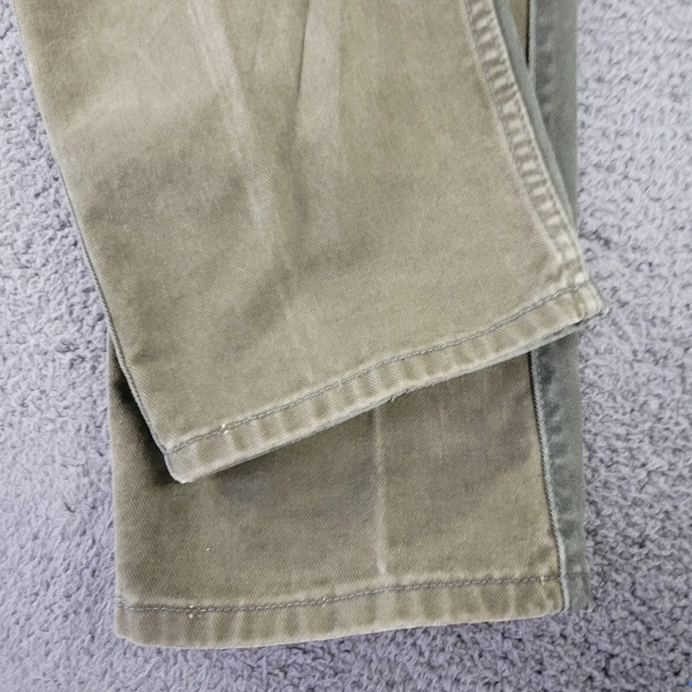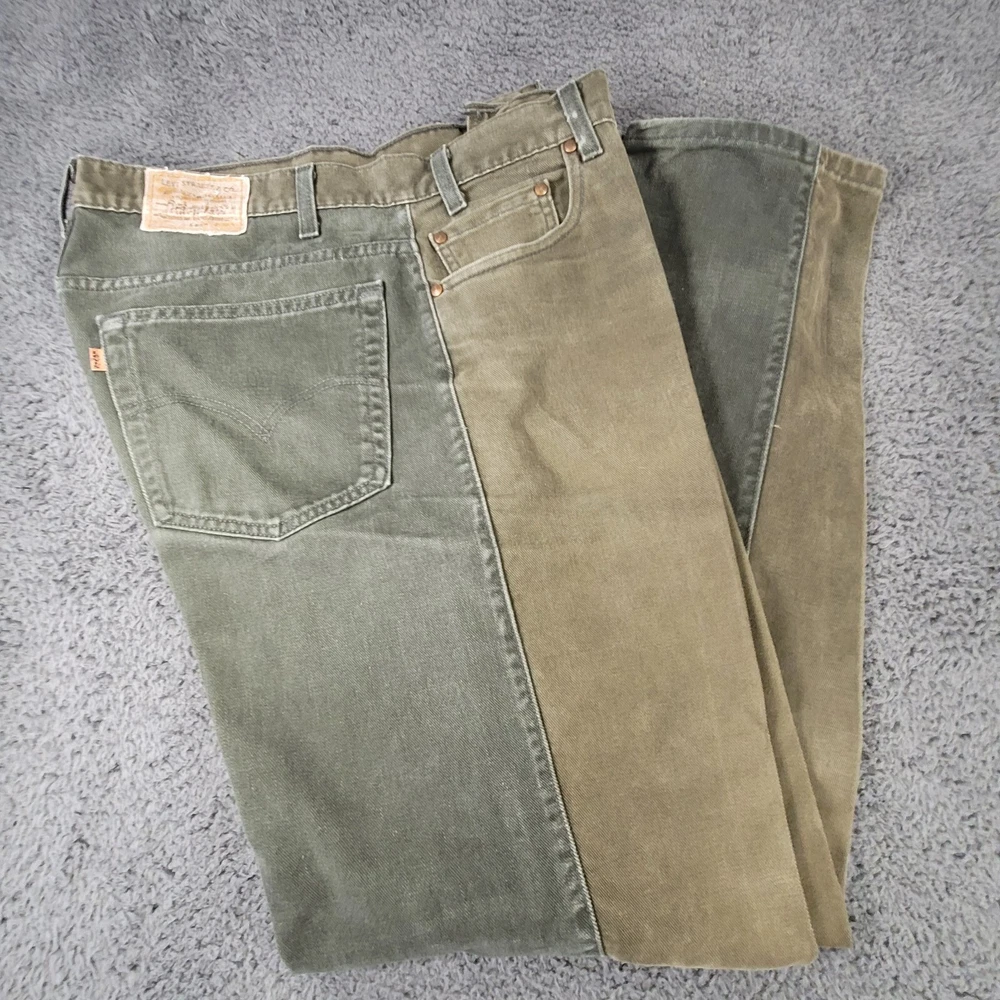 Experience the classic and timeless style of these Levi's Strauss Signature jeans in green and orange. Made from 100% cotton denim fabric, these pre-owned jeans are perfect for the vintage enthusiast. Featuring a solid pattern, button closure, and classic rise, these jeans offer a comfortable fit and a straight leg style that is suitable for any occasion. With a waist size of 40 inches and an inseam of 32 inches, these jeans are sure to fit any regular size man. The orange tag accents add a touch of flair to this vintage piece. Made in the USA, these jeans are a perfect representation of the American style. Enhance your wardrobe with these classic jeans today. Condition is pre-owned, they look good overall, and fast shipping is available today!