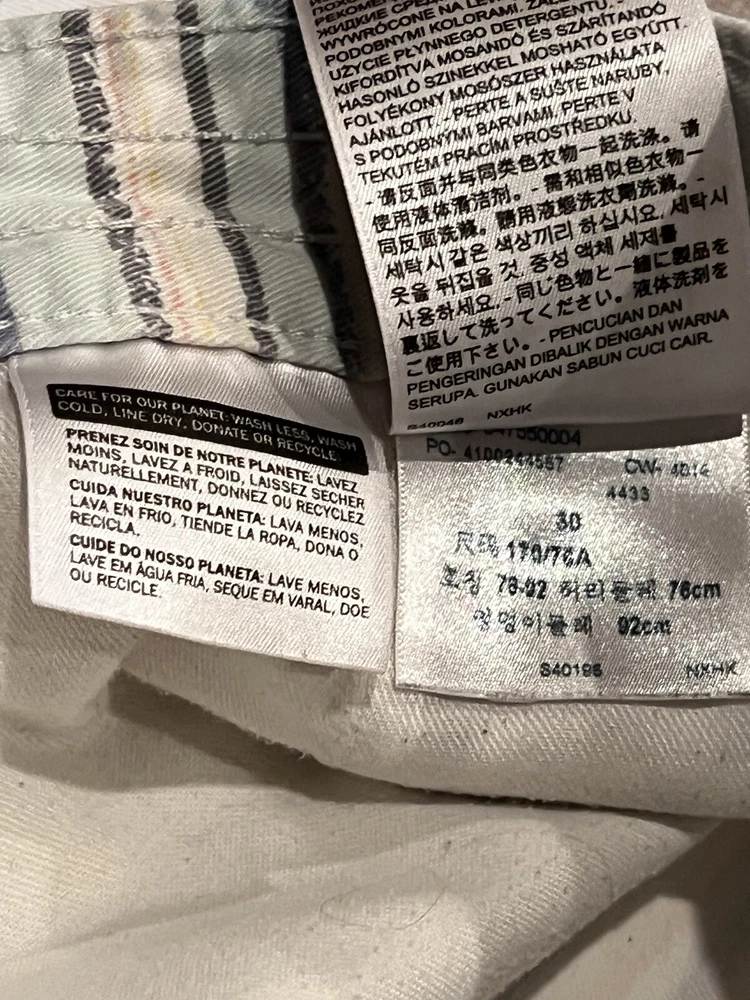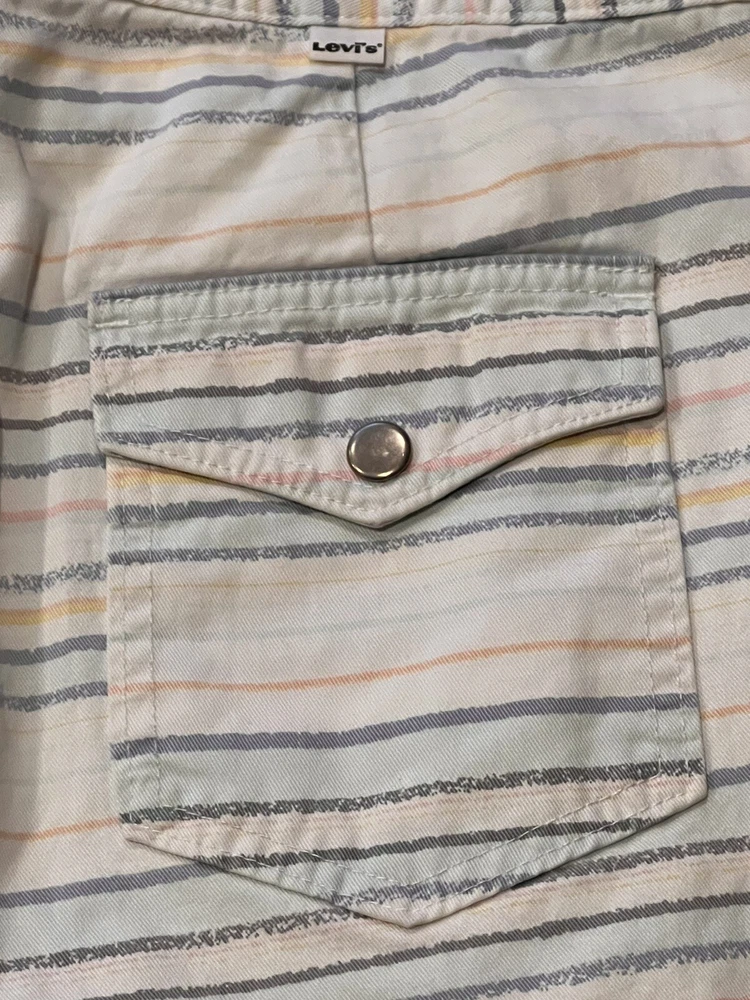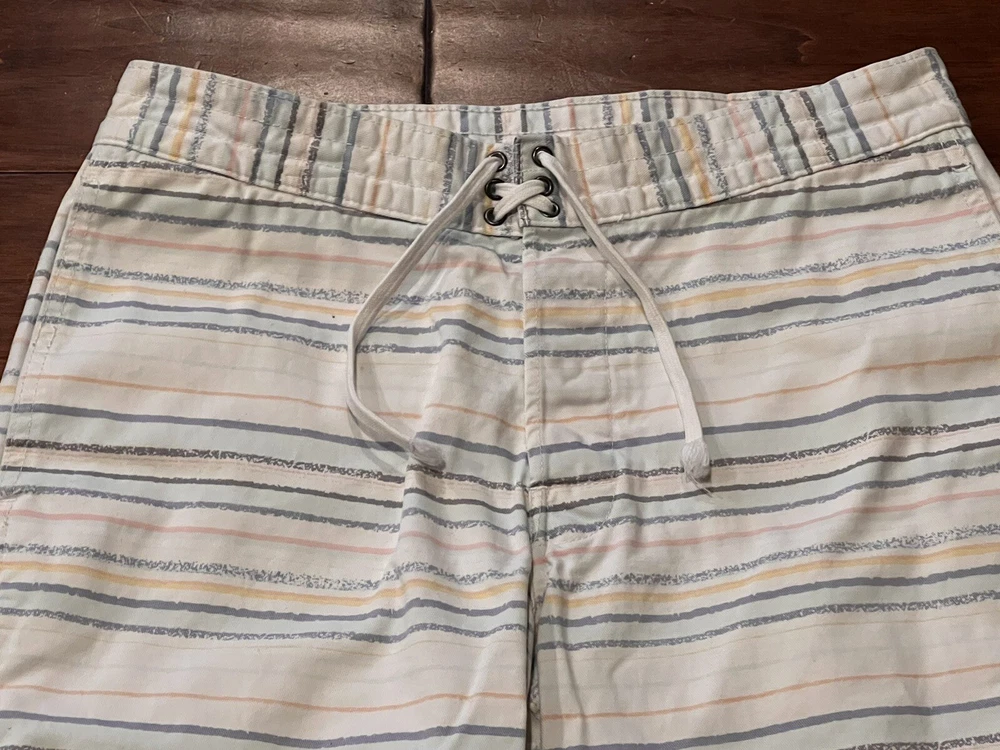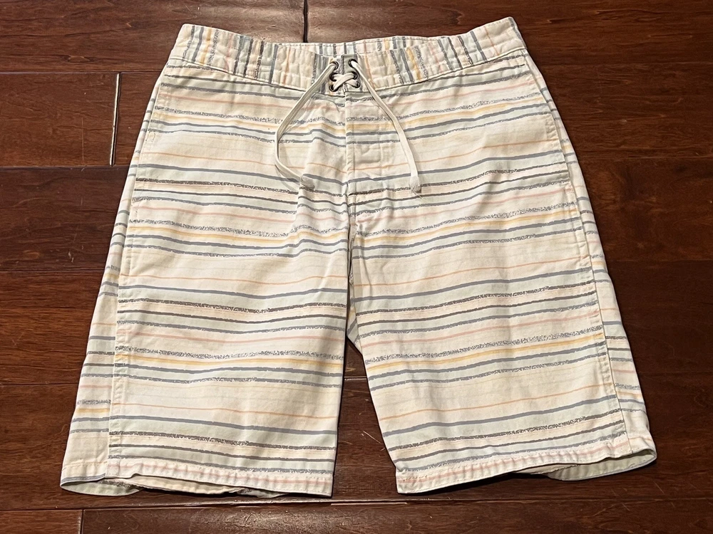 Levis White Orange Striped Mens 30 Casual Drawstring Button Pocket Chino Shorts Men's size 30 Shorts are in great condition with no rips or tears, please see all pictures for sizing dimensions. Only shipping by United States Postal Service. For international orders I use eBays global shipping program, and if you are in a country that qualifies please check the listing for a price. If you have any questions or need additional information please contact me through eBay. Item's will be shipped out the following business/mailing day to only the confirmed Pay Pal address on record after the payment is received. If you order on Friday night or Saturday/Sunday your order will be shipped out on the next Monday. Item's that are returned must be in original packaging, unworn, unopened with the tags attached.