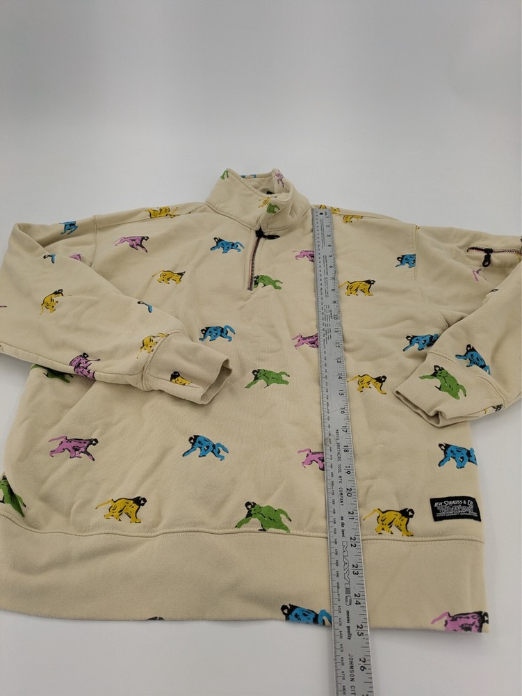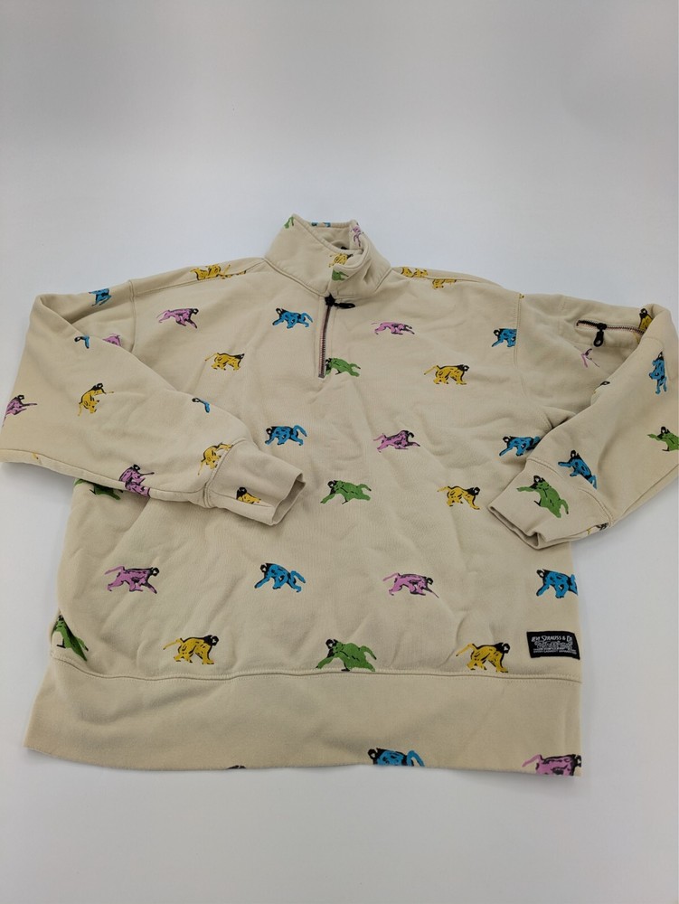 This sweatshirt is a unique gem—the playful monkey design by Alice Wong makes it stand out. The quarter-zip style is comfy and versatile, perfect for layering. It’s in fantastic pre-owned condition with no flaws, just as described. The fit is true to size, and the quality is top-notch. Love that it’s a collab with Creative Growth—art you can wear! Super happy with this find. Seller was transparent and responsive—great experience all around. Would definitely recommend!
