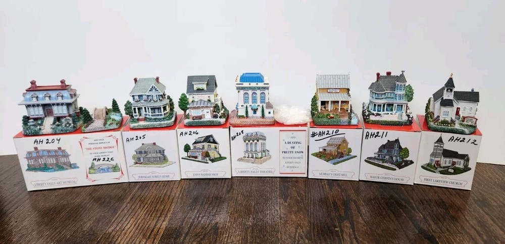 Liberty Falls Collection Lot 2000 in Box 7 Theatre Museum Church Mill Barber -AH204 2000 Liberty Falls Art Museum with Free The Stone Bridge -AH205 2000 Jeremiah Sobel's Home -AH206 2000 Joss's Barber Shop -AH208 2000 Liberty Falls Theatre with Free Liberty Falls Snow -AH210 2000 Murray's Grist Mill -AH211 2000 Mayor Griffin's House -AH212 2000 First Lakeview Church Clean & intact, in original boxes. Please see all photos for details, visual description & condition of figurines. Message me with any questions you may have about these items. Thank you so much for viewing my listing, I hope you have a fantastic day! 0810-G1-LF04-N 1118-G1-LF04-R