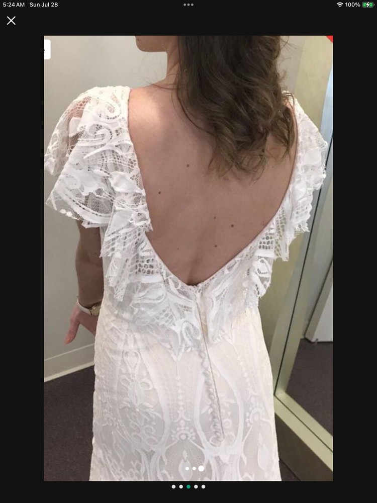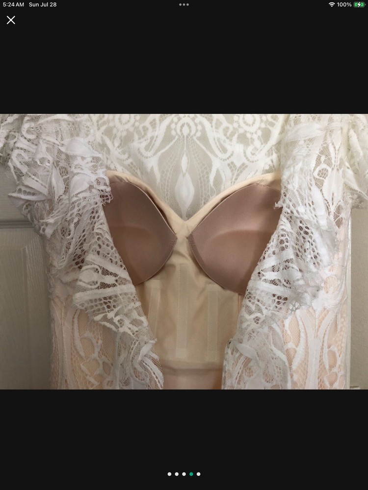 Absolutely stunning dress—the delicate ivory lace and flattering fit make it feel like it was made just for me! The waist alteration and added bra cups give extra comfort without sacrificing elegance. Perfect for brides who want timeless romance with a tailored touch. Still looks brand new, and the quality is incredible for the price. Would highly recommend!
