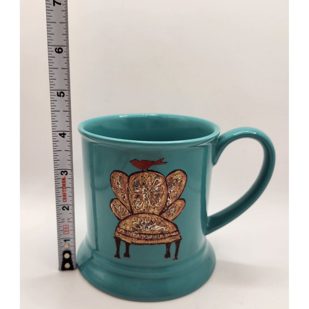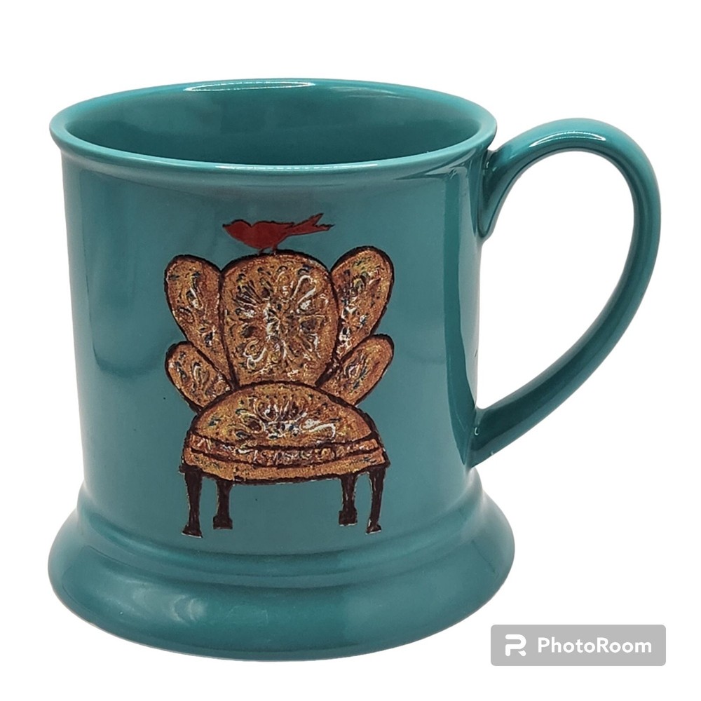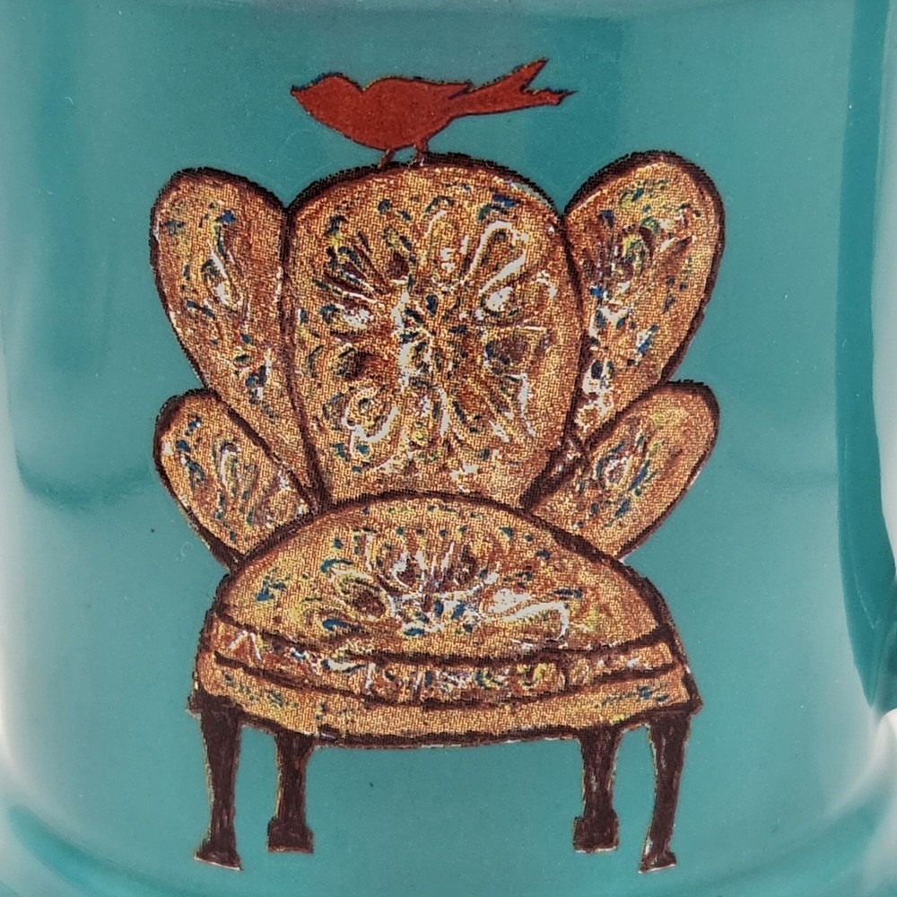 Little e Studio Creative Co-op Turquoise Coffee Cup Mug Red Bird On Overstuffed Chair 14 Oz Preowned In Excellent Condition No Chips Cracks Or Crazing Read All Descriptions View All Photos No Refunds Will Consider All Reasonable Offers Cross Posted On Other Sites