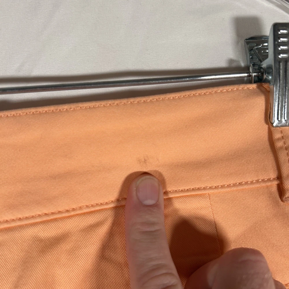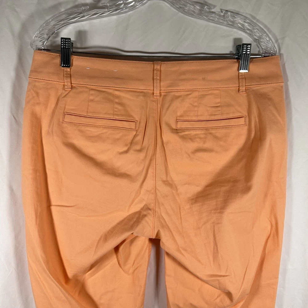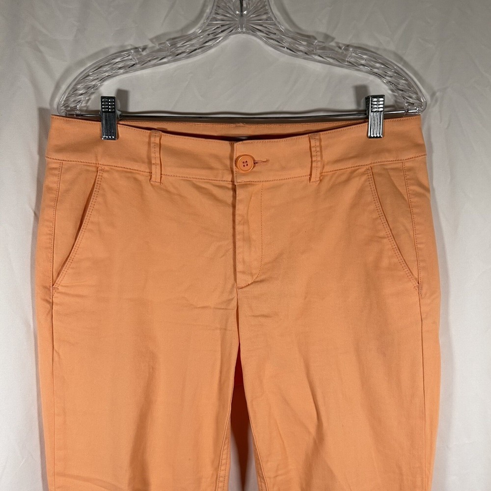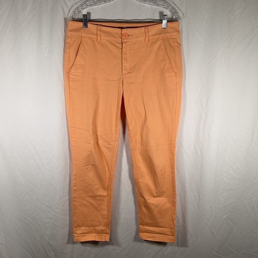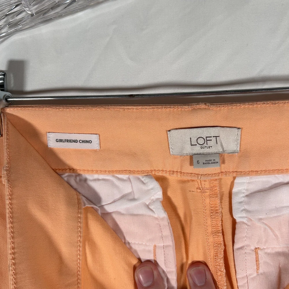 Waist 34" Rise 9" Inseam 28" Please see the marks shown. Elevate your wardrobe with these stylish orange girlfriend chino pants from Loft. Perfect for any occasion, whether it be for travel, workwear, casual wear, or a party/cocktail event, these pants feature a mid-rise waist size of 34 inches and a comfortable 28-inch inseam. The pants are made of a blend of spandex, cotton, and cotton blend, providing both stretchability and comfort while also featuring pockets for added functionality. These pants are a regular fit, size 6, and have a unique zipper and button closure. The pants are suitable for all seasons, including winter, summer, fall, and spring. The pants are not handmade and are not vintage. Boost your style with these Loft pants today, and add them to your collection!