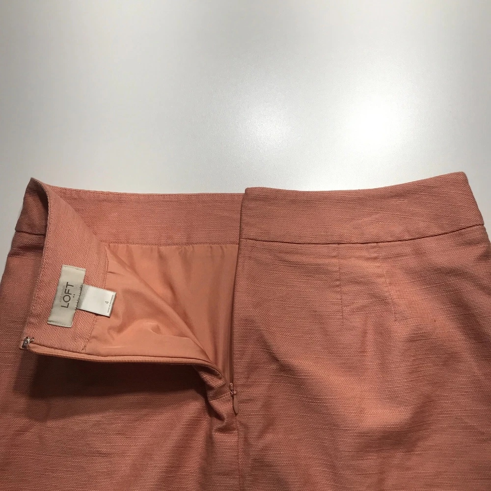 Loft Skirt Womens Size 4 Light Orange Peach w/ Floral Lace Crocheted Casual Day Out Brand: Ann Taylor Loft Size: 4 Color: Light Orang/Peach Style: Straight Short Features: Lined, Rear Zip, Mid Rise, Stretch Condition: Pre-owned Region/Country of manufacture: Indonesia SKU: 0729-06 Actual Measurements(See photographs of actual measurements above)*: Waist: See photos above for photo of measurement Waist to hem: See photos above for photo of measurement Across the bottom: See photos above for photo of measurement *Waist & Inseam are measured to the nearest whole inch. Half inch measurements are rounded toward the tag size so please see the photos of the actual measurement. The waist is measured across the back and doubled with a dip in the front. Depending on the item's weight and destination, I will ship this item out via USPS First Class Mail, Priority Mail, or Fed Ex Home Delivery with a tracking number for confirmation. If you want a specific delivery service, please contact me prior to making a purchase. I ship items out daily so expect a quick delivery. Items typically ship the same business day. I try to respond to questions right away so please feel free to ask for information or photos. We do our best to describe accurately and measure approximately at the time of listing, but just in case the item doesn't work for you, we offer 60 day free returns on unused/unworn items. Please measure and check your favorite items at home to estimate fit. Thanks for looking.