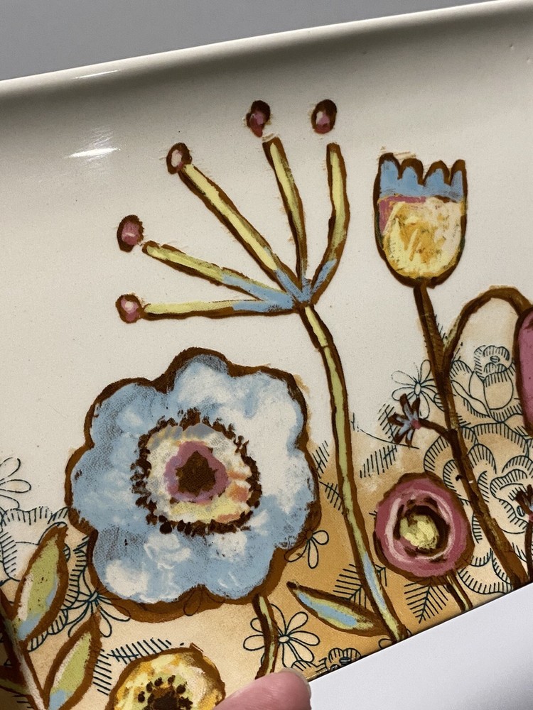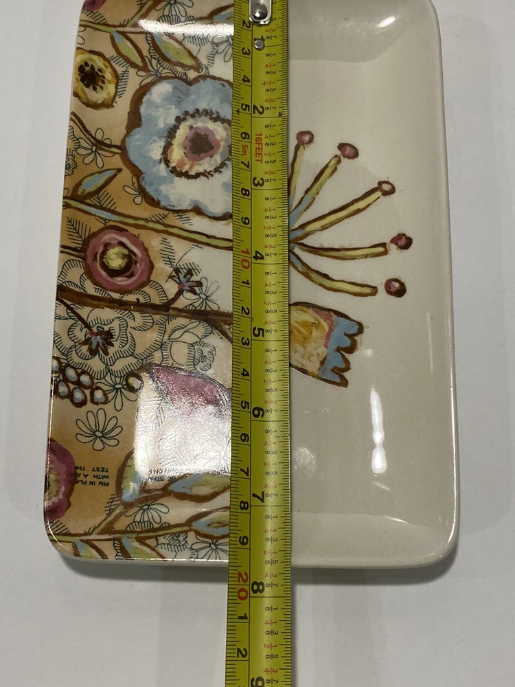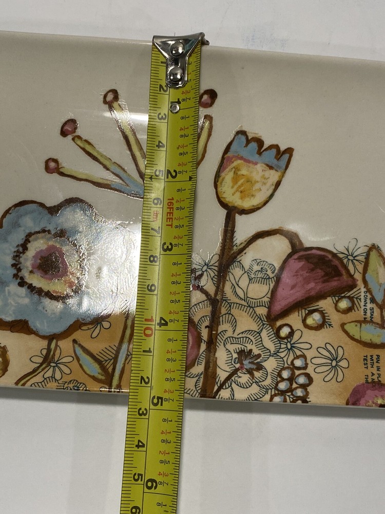 Lori Siebert floral rectangular dish Creative Co Op spring/summer decor. Very cute dish, perfect for serving snacks, candy, appetizers, etc. Excellent condition, no chips or cracks. Please see photos for more details, including measurements. Thanks for looking!