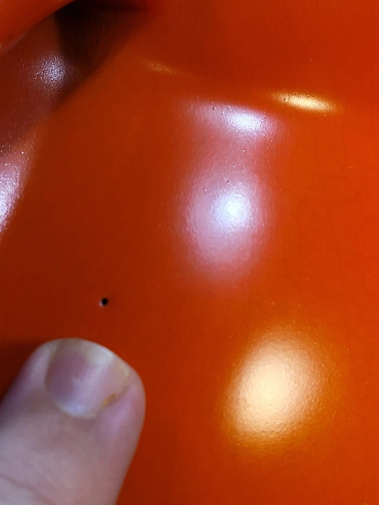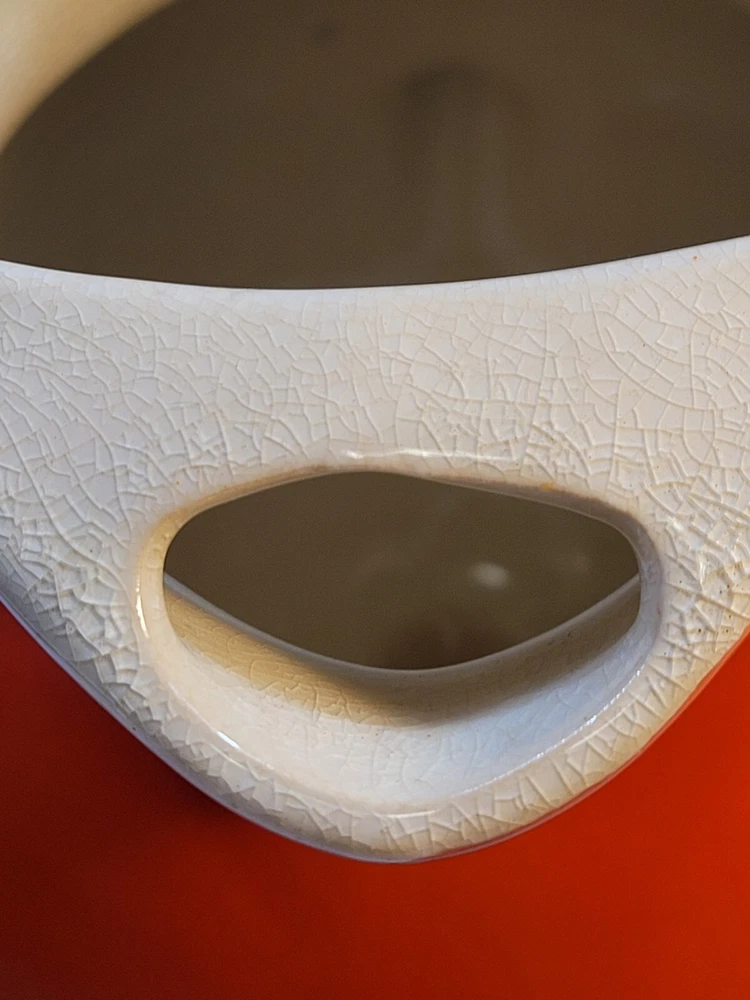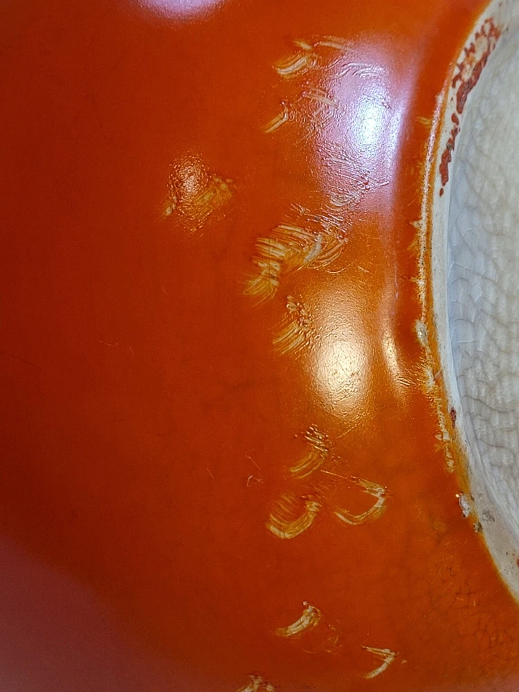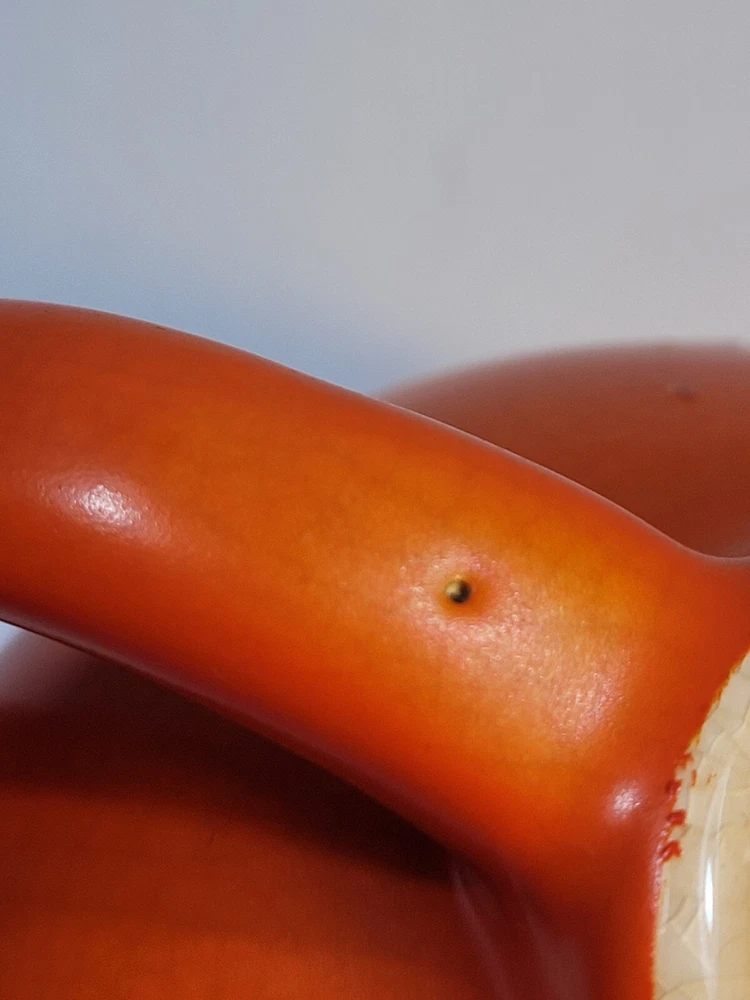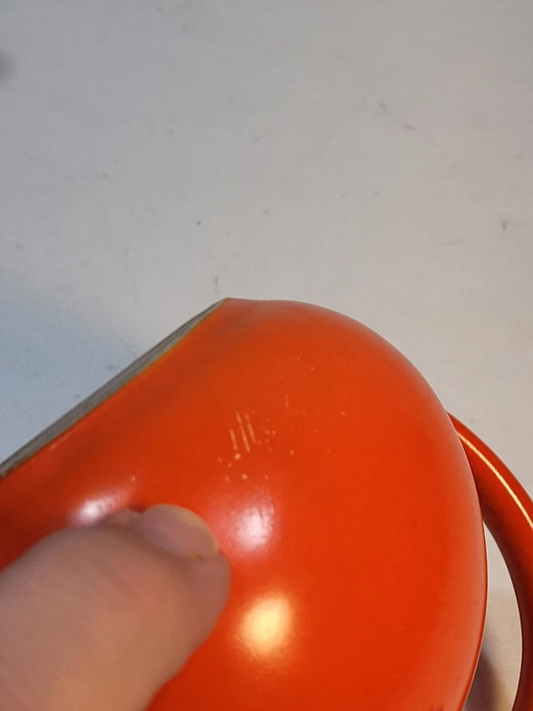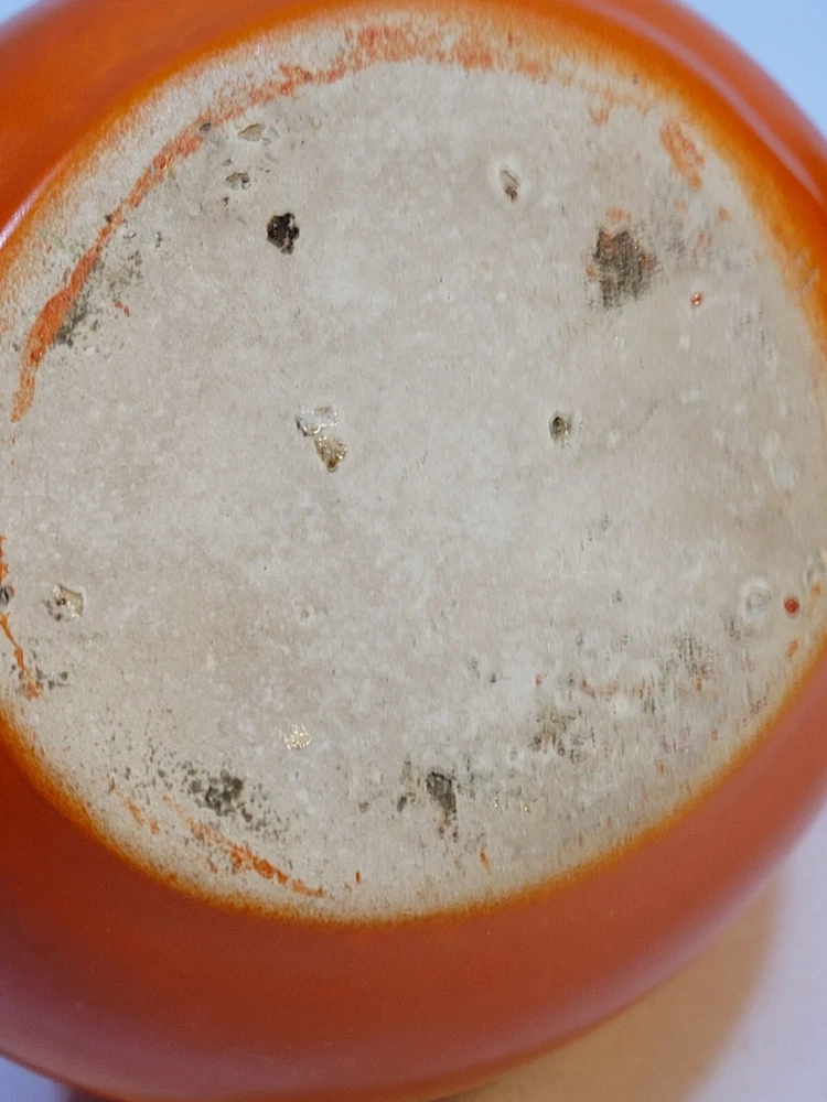 Lot 3 Ball Jug Pitchers All are Unbranded Large Pitcher has "USA" stamped in bottom Mid-Century MCM Color: Orange Significant Crazing on interiors of all 3 items Large Pitcher is 7 inches tall X 6 inches wide 2 Small Pitchers are 3.5 inches tall and 3.5 inches wide Used Items - Scuffs and marks - The large pitcher has a few manufacturer paint flaws around the base - see last photo - significant crazing on interior of all 3 items - see photos for close-ups of items and marks and scuffs on all 3 items - Overall good working condition - great decorative pieces Shipping is UPS Ground