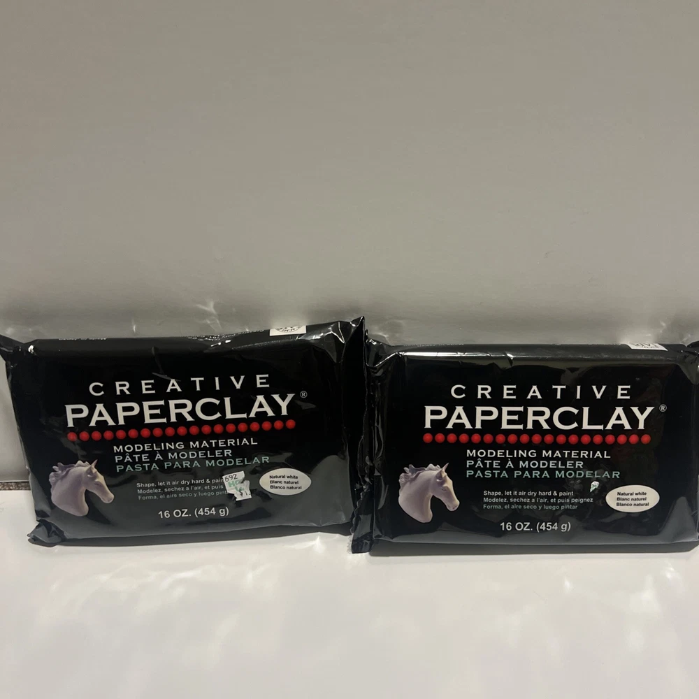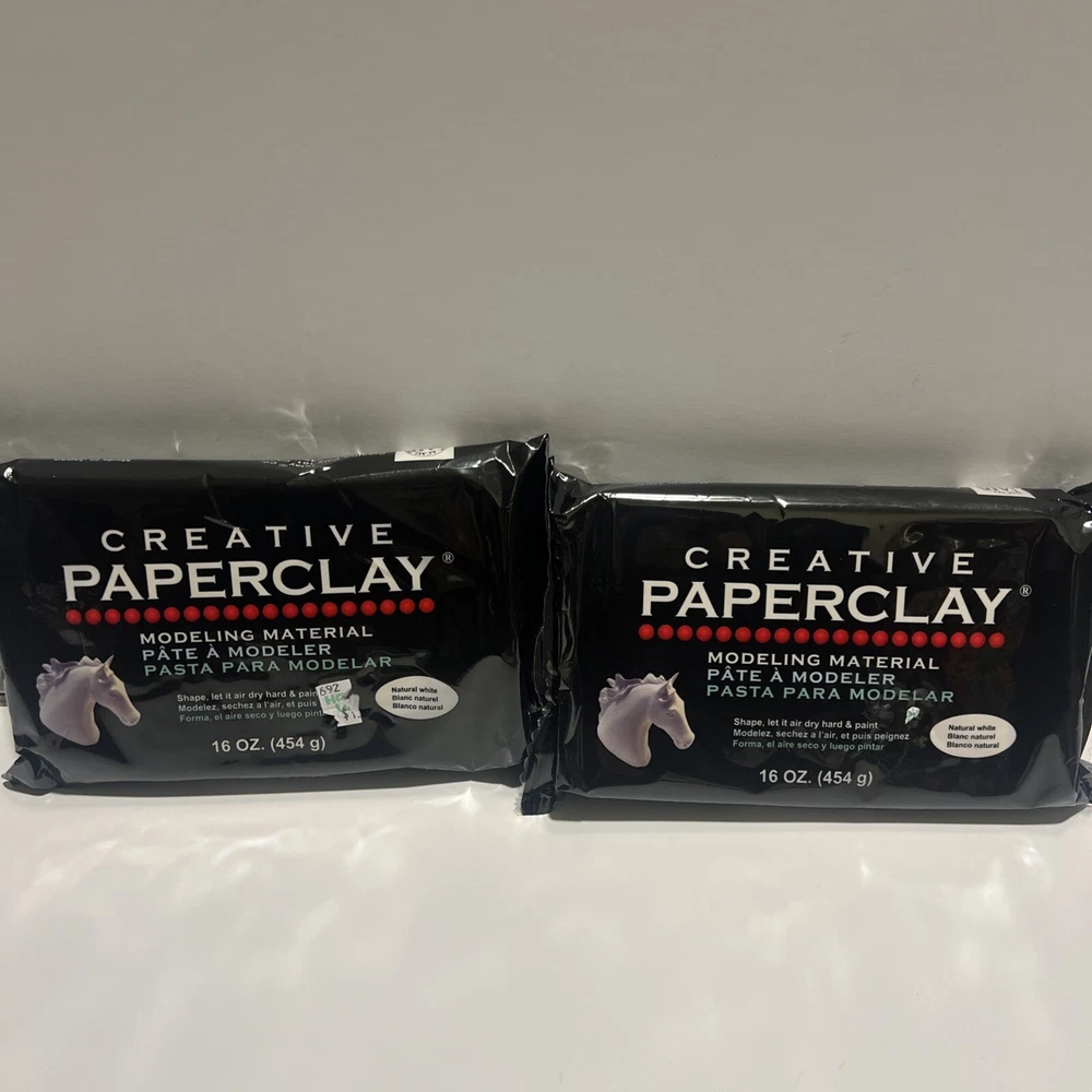 This lot includes 2 packages of Creative Paperclay, totaling 1 pound of air dry clay. Each package contains 8 ounces of clay, making it convenient for crafting projects. The unit type is in pounds, and it is a custom bundle with a unit quantity of 1. This Creative Paperclay is ready to use and does not require baking, providing ease of use for sculpting, molding, and ceramics projects.