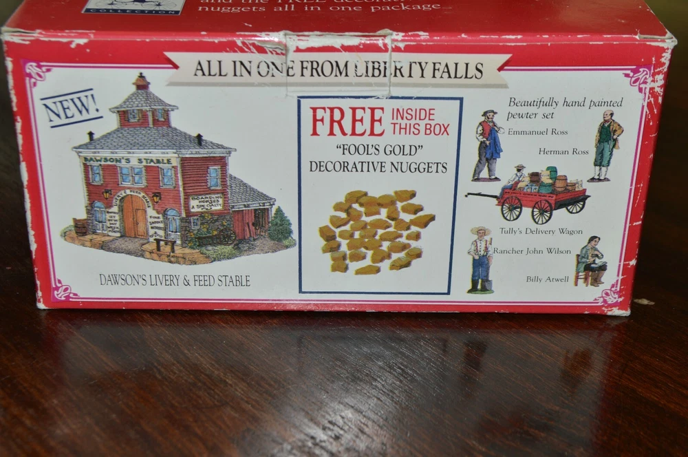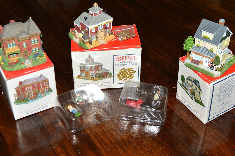 Lot of 3 Liberty Falls Collection Dawson's Livery, Sinclair House, Joss's Barber. Condition is used, but very good. Lot includes 2000 Joss's Barber Shop (AH206); 2000 Sinclair House (AH209); 1998 Dawson's Livery & Feed Stable with pewter characters. Houses are in good condition; characters look unused. Please see all pictures for further indication of condition and reach out with any questions prior to purchasing. Shipped with USPS Priority Mail.