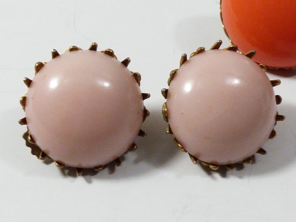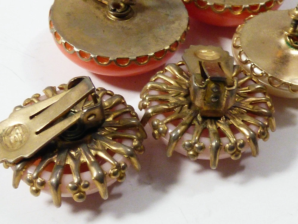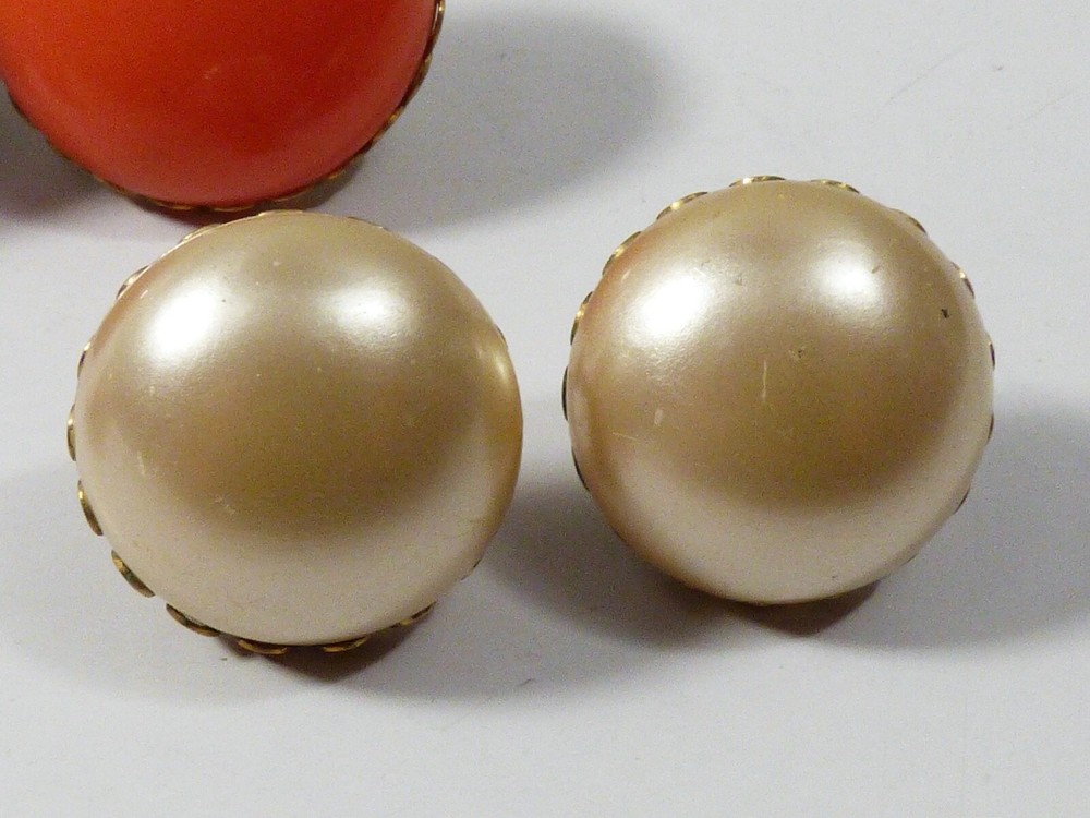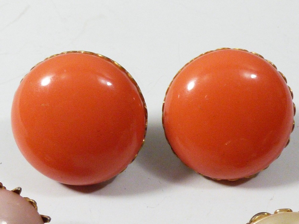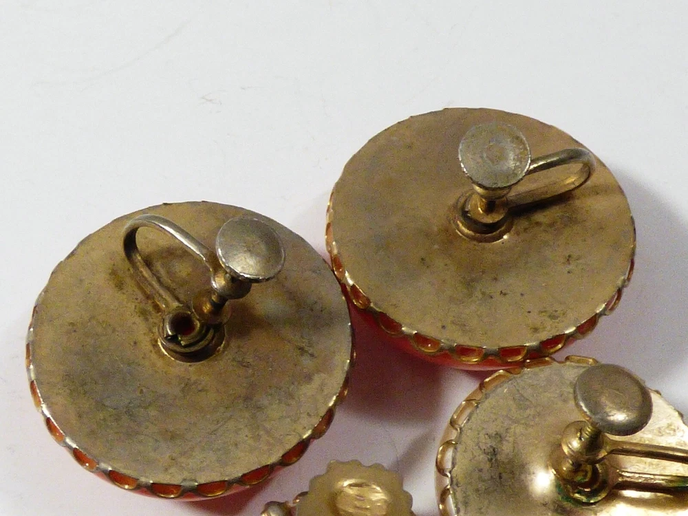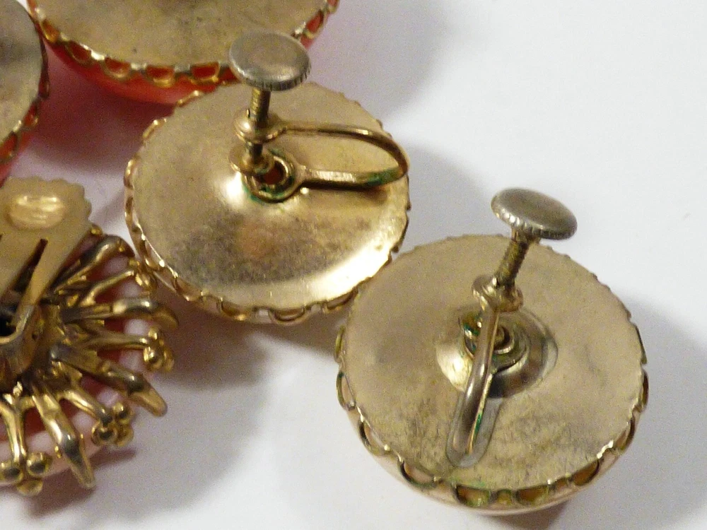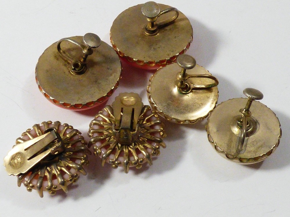 THIS IS A LOT OF 3 PAIRS OF VINTAGE, MID CENTURY, RETRO, GOLD TONE METAL CLIP ON EARRINGS MEASURES APPROX. FROM 1 1/4" TO 7/8" IN DIAMETER GOOD VINTAGE CONDITION, WITH WEAR, DISCOLORATION ON THE BACK, AS PICTURED. PLEASE SEE PICTURES FOR DETAILS AND E-MAIL YOUR QUESTIONS.