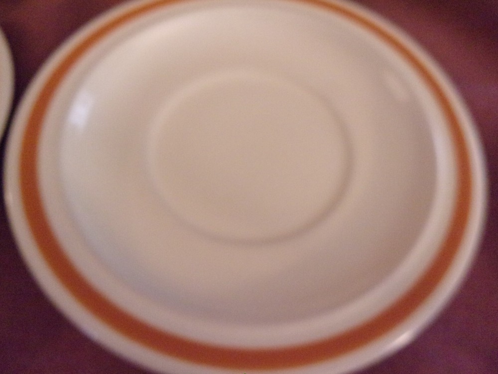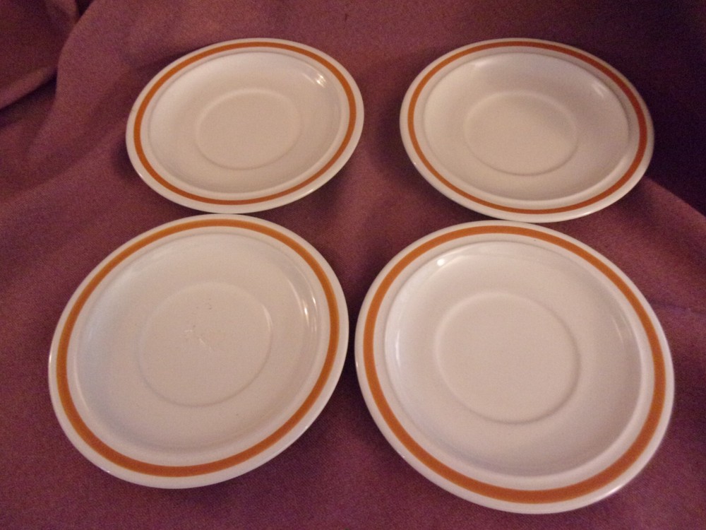 Oven, Table Freezer Hand Painted Orange rim .. cream dish This is set of 4 saucers . Good vintage condition, no chips, cracks. I ship within 3 days of payment not including weekends and holidays If you would like combined shipping please wait for an invoice with multiple items before paying.