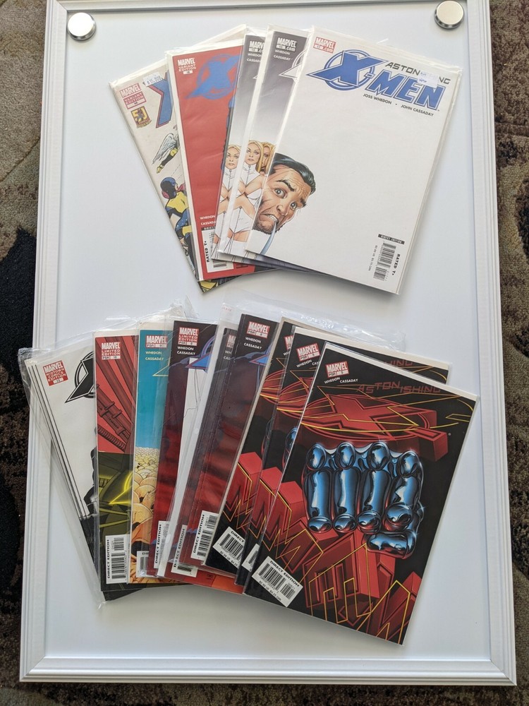 Lot of 41 Astonishing X-Men Comics Story by Joss Whedon; Artwork by John Cassady Summary This lot consists of 23 Astonishing X-men comics from Joss Whedon's inspiring run. You will receive the following comics: Issue 1 Director's Cut Issue 2 Issue 4 (~FN Condition) Issue 5 (4 copies) Issue 7 (2 copies ~FN Condition) Issue 8 (4 copies) Issue 8 Limited Edition (3 copies) Issue 9 Issue 10 Limited Edition Issue 11 Issue 12 (3 copies) Issue 13 Midtown Comics Edition (9 copies) Issue 14 Issue 15 Issue 16 Issue 17 Issue 18 (2 copies) Issue 19 Variant Edition (2 copies) Issue 22 Variant Edition Issue 48 Variant Edition (Story by Marjorie Liu, Cover by David Aja) Condition Most comics are in FN/VF to NM- condition (7.0 - 9.2). Please contact me with any specific issue questions. Shipping Policy Domestic Shipping: I combine shipping on Multiple Auction/Buy it now wins. International Shipping: Please see shipping tab for details. My shipping costs are affordable and include only postage and the cost of shipping materials. All comics will be shipped promptly and securely in either a padded envelope with cardboard backing (non-CGC books) or a corrugated box (for CGC graded comics).