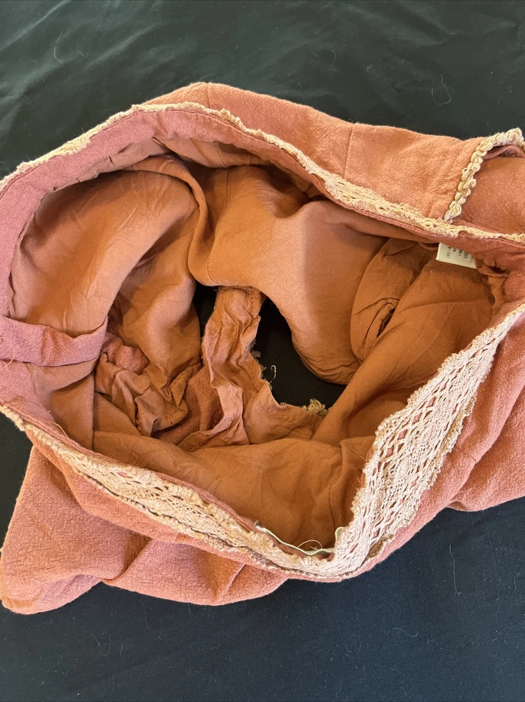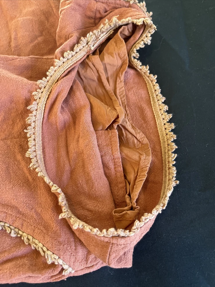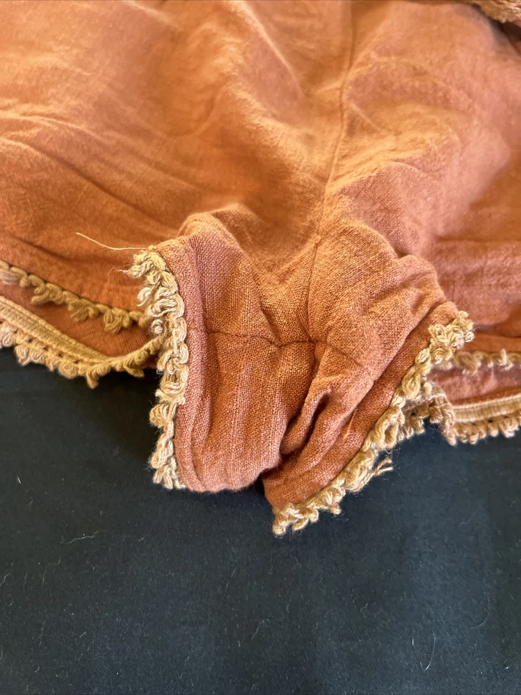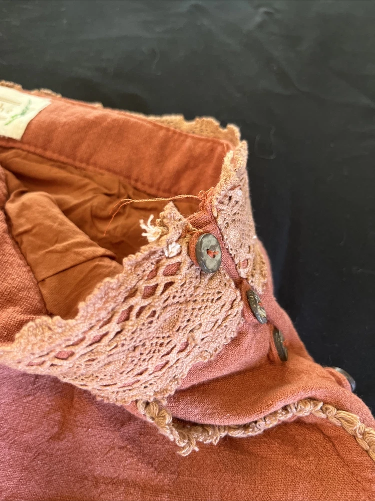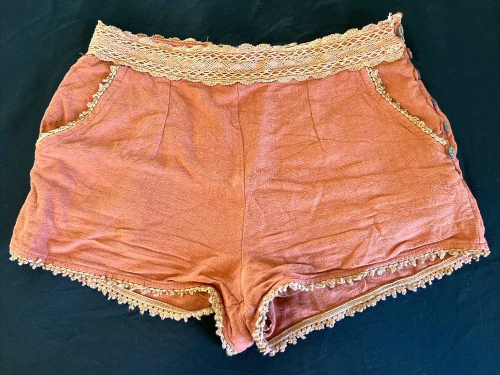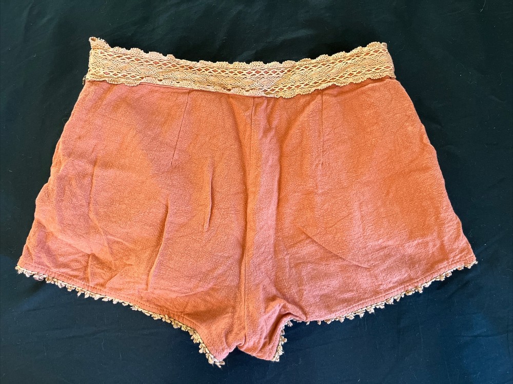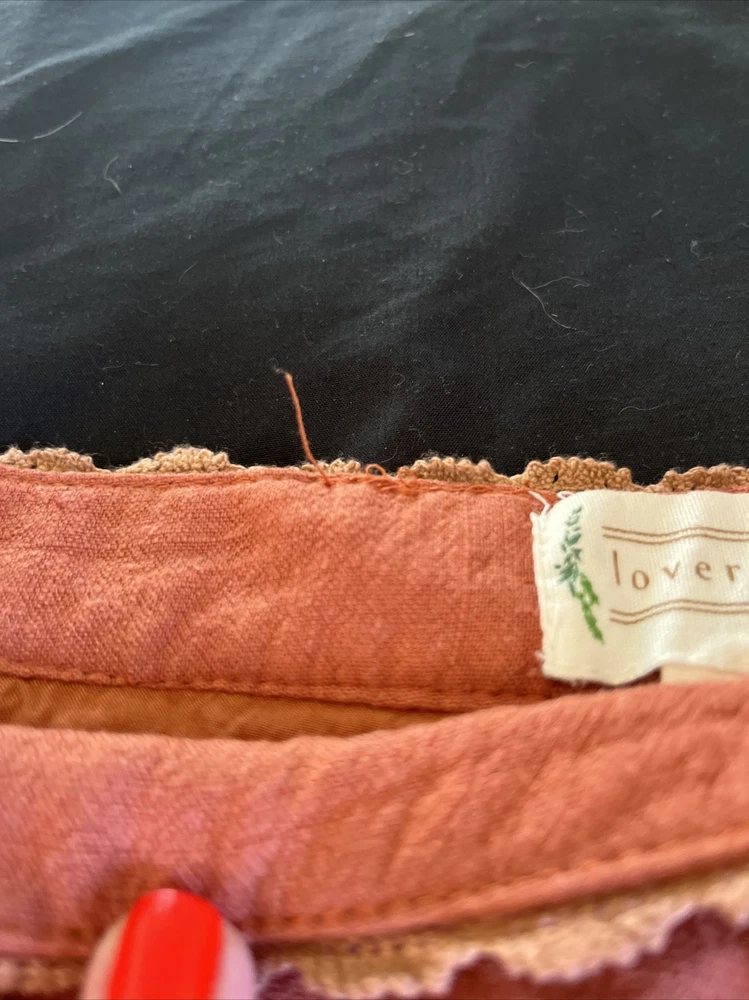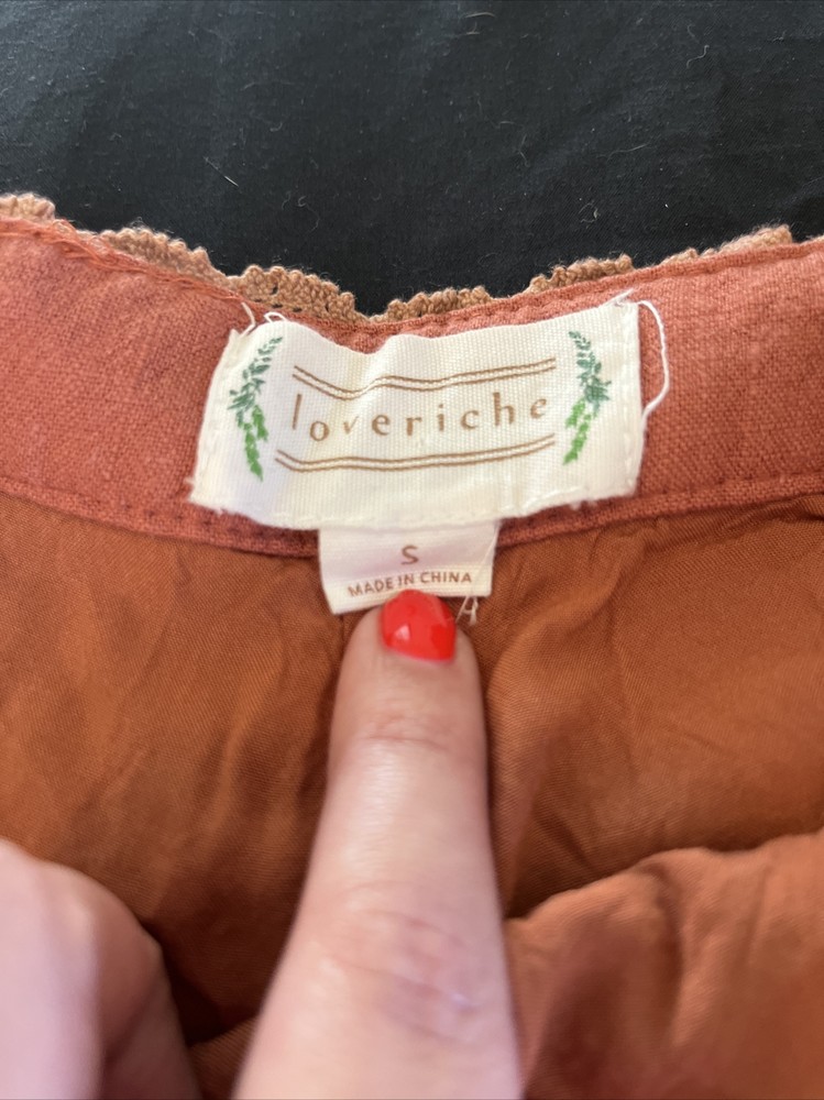 These Loveriche burnt orange canvas shorts are a must-have for any fashionista's wardrobe. The shorts are fully lined and made of 100% cotton, ensuring maximum comfort. The shorts come in a slim fit and feature a flat front and mid-rise waist with a 27-inch waist size. The shorts have a zip closure and slash pockets, making them perfect for casual occasions and travel, and can be paired with a bohemian, 70s, 80s, or 90s theme. The Alice in Wonderland, Aladdin, and Andrea characters make these shorts unique, while the solid pattern adds a classic touch. Dry clean only is recommended for garment care. Please note this item is pre-owned and may show signs of use- see photos. Measurements taken in inches with item laying flat. Waist: 13.5 Hips: 17 Waist to bottom: 10 Inseam: 1.75 Ask any questions before bidding! Check out my other listings for more great deals!
