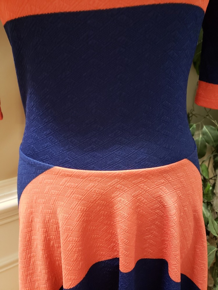 LuLaRoe Women Orange Blue Polyester Round Neck Short Sleeve Knee Length Dress S Description LuLaRoe Women Orange Blue Polyester Round Neck Short Sleeve Knee Length Dress S. Product Detail • Brand : LuLaRoe • Size: S • Color : Orange & Blue • Material: Polyester • Type: Knee Length Dress • Department: Women's • Neck Style: Round Neck • Sleeve Length: Short Sleeve Please message me if you have any questions. I stand by all of my items before and after purchase. Please see my feedback.
