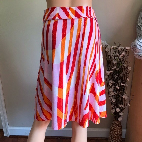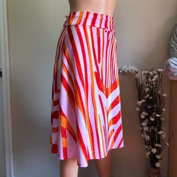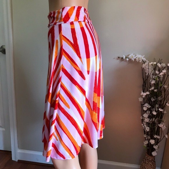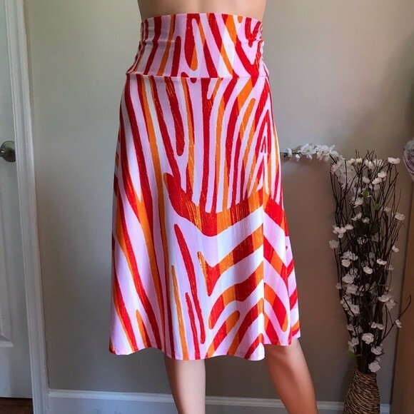 LuLaRoe Women’s Orange/Red Midi Skirt Size Small. LuLaRoe Women’s Midi Skirt Details *Size: Small (4-6) *Color: Orange, Red and White *Condition: New without Tag *Stretchy *No Lined Measurements approx. lay flat *13 inch (33.02 cm) waist *25.5 Inch (64.77 cm) Length