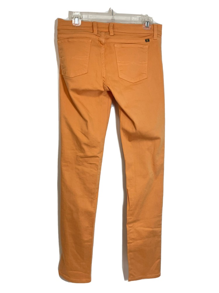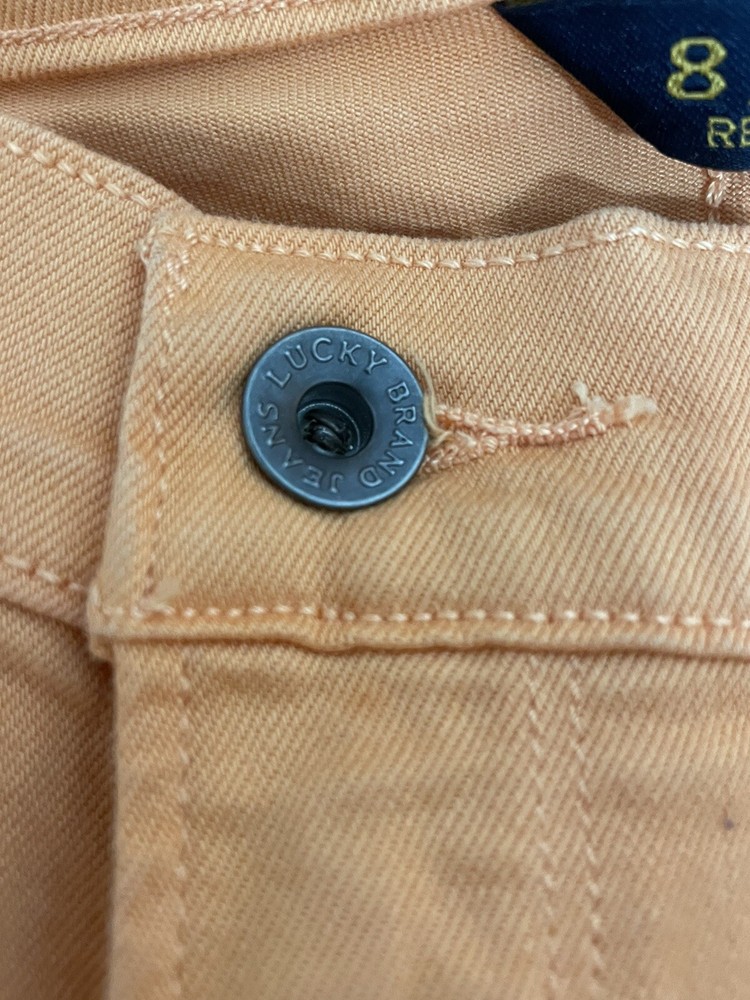 These Lucky Brand skinny jeans are super comfortable with just the right amount of stretch! The fit is perfect—hugs in all the right places without feeling tight. The orange color is vibrant and unique, making them a fun addition to any casual outfit. Even though they're gently worn, they still look fantastic with no major flaws. The ankle length is just right, and the 33-inch inseam hits at a great spot. Love that they’re from a smoke-free and pet-free home too—super clean and ready to wear! Definitely a great buy.