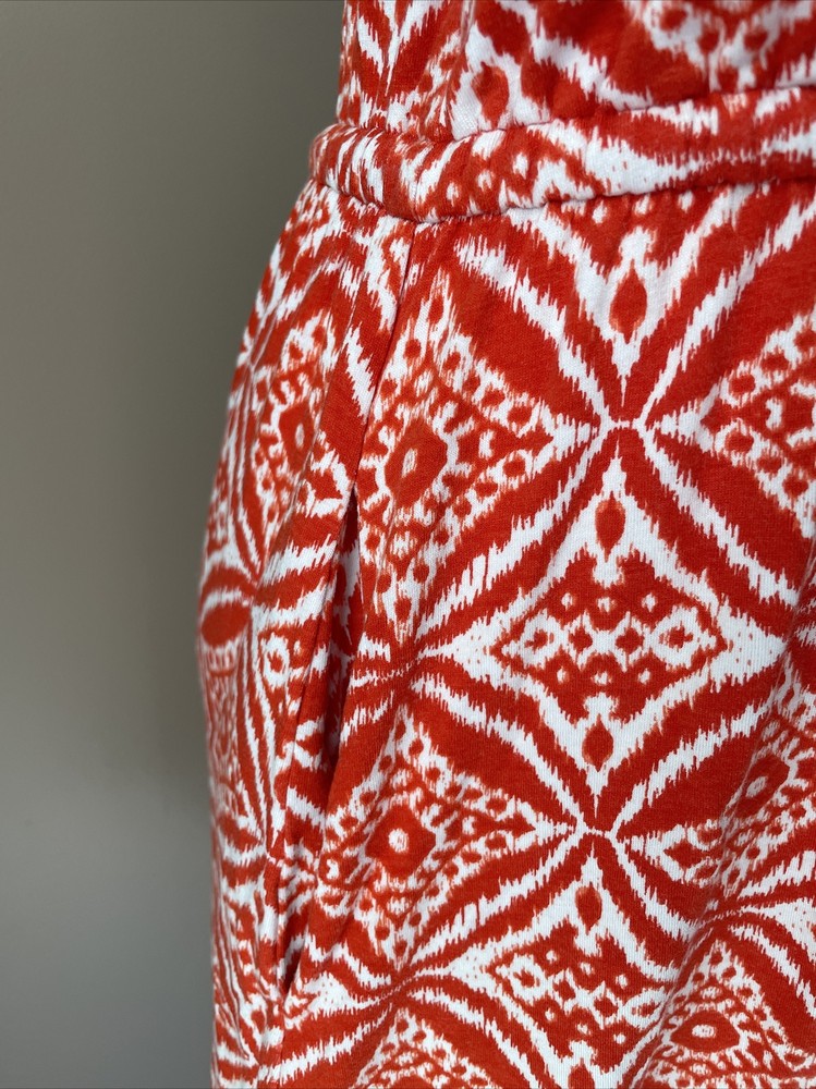Lucky Brand orange white printed dress women’s small. In excellent condition Has pockets! Very sketchy and comfortable 95% viscose, 5% elastane Non smoking