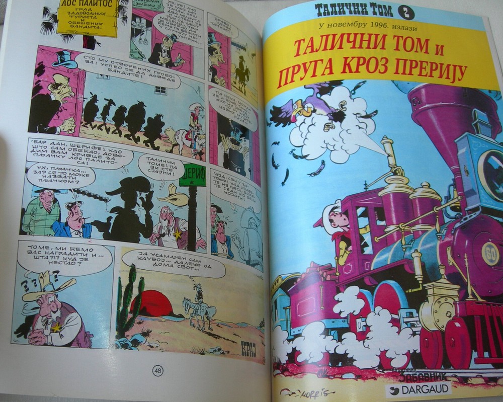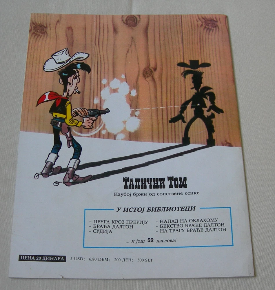Description This is the sale for Serbian edition of Lucky Luke comic, episode Lucky Luke Contre Joss Jamon - upon Dargaud licence . This album was the first single published title from the series issued by Politikin Zabavnik in October 1996. Magazine is complete, color, 48 pages, Serbian language, Cyrillic letters. Signs of use on cover (minor stains), small fracture on the down line of back cover and few last pages. Good condition. Shipping If you wish more than one item please ask for shipping price so I can calculate it depending of weight of package. I always send item using REGISTERED mail!!!! This is my default way of shipping. IMPORTANT: I'm sending item immediately after I got payment. Please feel free to e-mail me if you have any question. Bid for more and save on shipping. Happy Bidding!!!