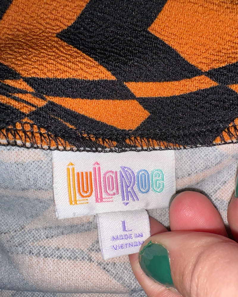 This Lularoe pencil skirt is such a stylish find! The bold black and orange chevron pattern makes a statement while keeping it classy. The fit is flattering and comfortable, hitting just at the knee for a polished look. Perfect for dressing up or down—pair it with a simple blouse for work or a sleek top for a night out. The fabric feels great, and the size L fits true. Love that it’s NWOT—such a steal for a barely-worn gem! Definitely a wardrobe must-have.