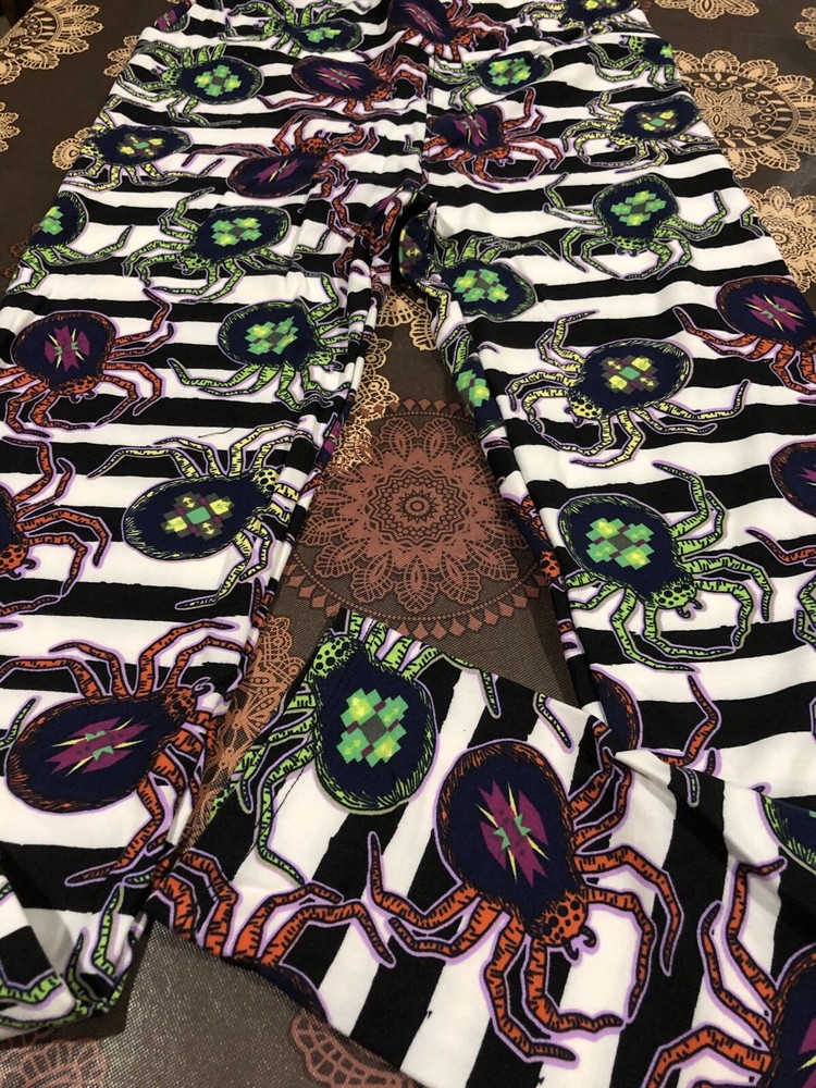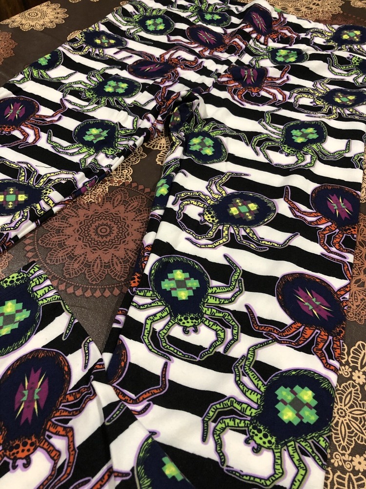 Lularoe Halloween Leggings OS Black Teal Striped Spiders Orange Green NWT. Condition is New with tags. Shipped with USPS First Class....
