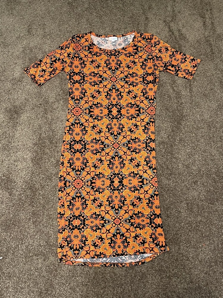Lularoe Orange Floral Summer Short Sleeve Nicole Dress Size Small. Condition is "Pre-owned". Shipped with USPS First Class....