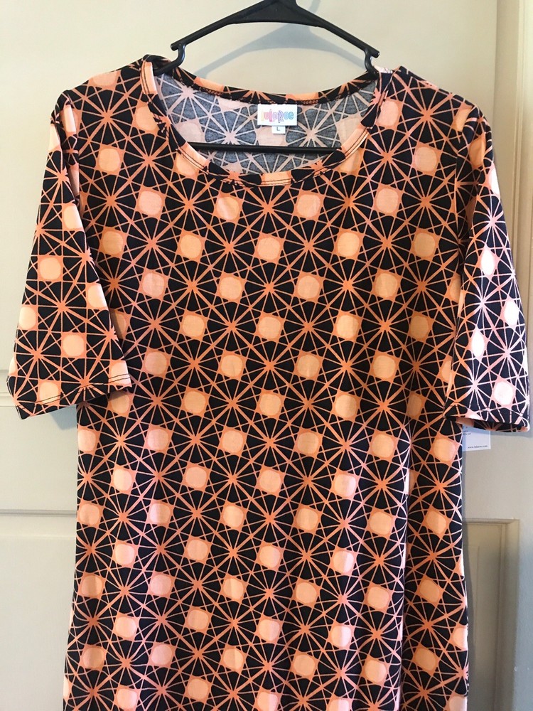 Lularoe Large New Vintage, hard to find retro print! The Julia is a form fitting, knee-length, knit dress — with mid-length sleeves and a high neckline. Its simple silhouette makes it the perfect canvas for layering and accessorizing. And of course, boasting versatility and style, it’s a staple for every season’s wardrobe. A feminine and flattering outfit for any occasion, it’s possible you may never want to take it off. The Details: The Julia is a knit dress with mid-length sleeves and a high neckline. BEST PAIRED WITH: SHIRLEY & LYNNAE Women’s Julia Black and orange squares, “web” beautiful print. Form Fitting Dress Condition is New with tags. Shipped with USPS First Class Package. We strive to send out items the same day. Please email with questions, thanks! Hi 800 U