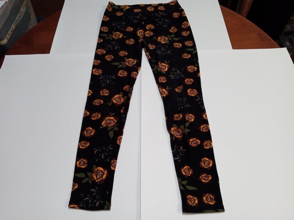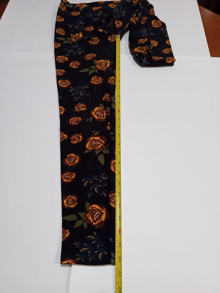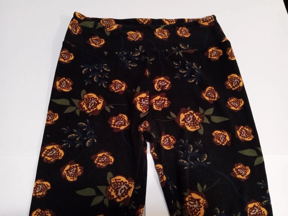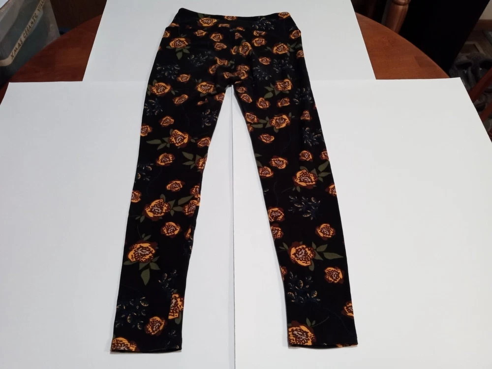 Elevate your wardrobe with these stylish LuLaRoe leggings. The black and orange floral pattern adds a touch of feminine grace to any outfit. The mid-rise design offers a flattering fit, while the soft and stretchy blend of polyester and spandex ensures comfort all day long. These leggings are perfect for any woman looking to add a pop of color and style to her wardrobe. The one size fits all design makes them easy to wear and share, while the 26.5 inch inseam and 25 inch waist size guarantee a comfortable fit. Don't miss out on the chance to own these beautiful leggings that are sure to become a staple in your wardrobe.