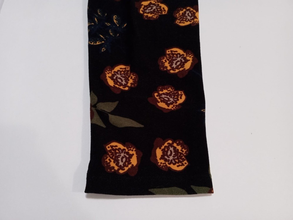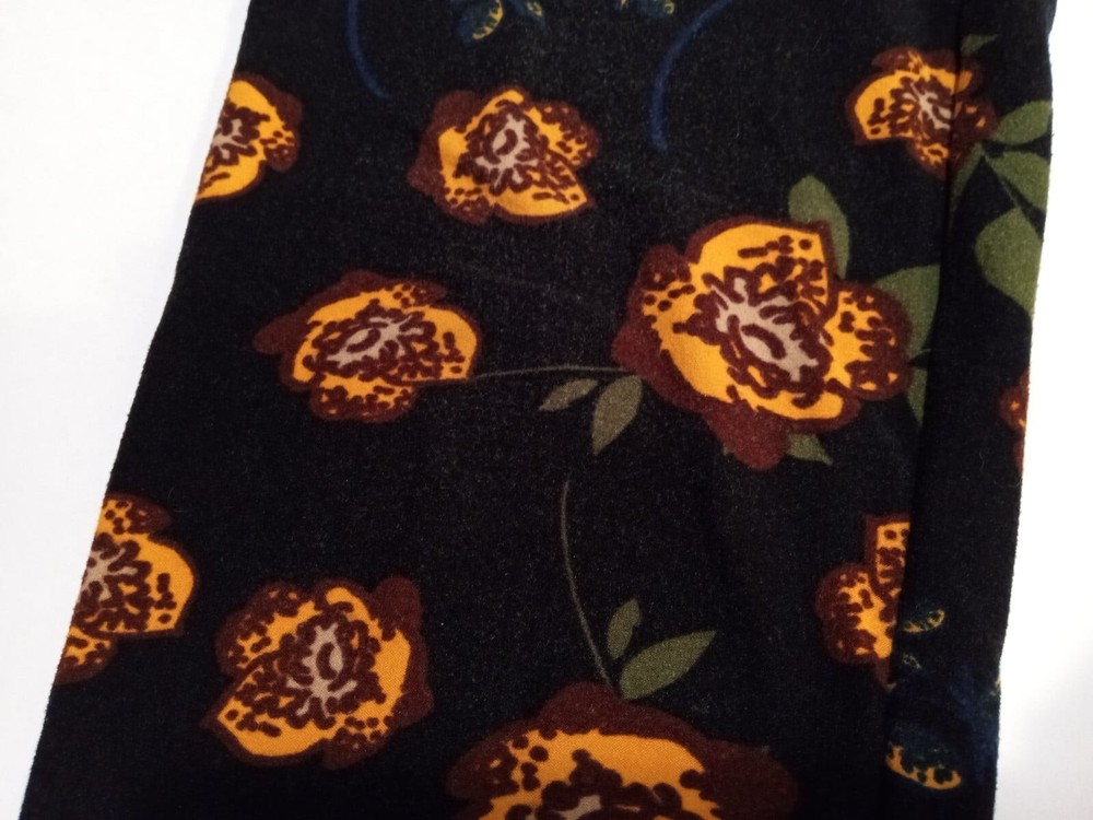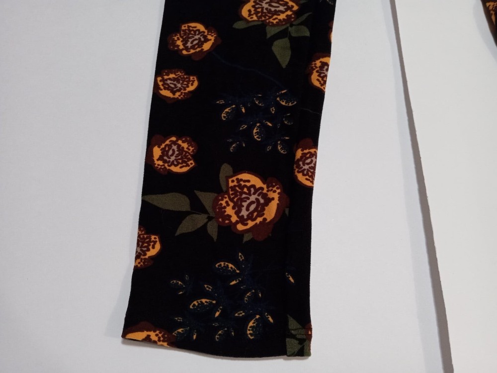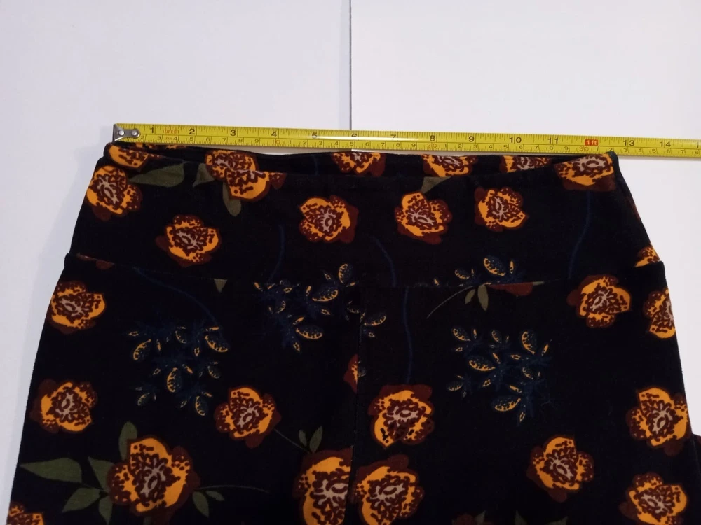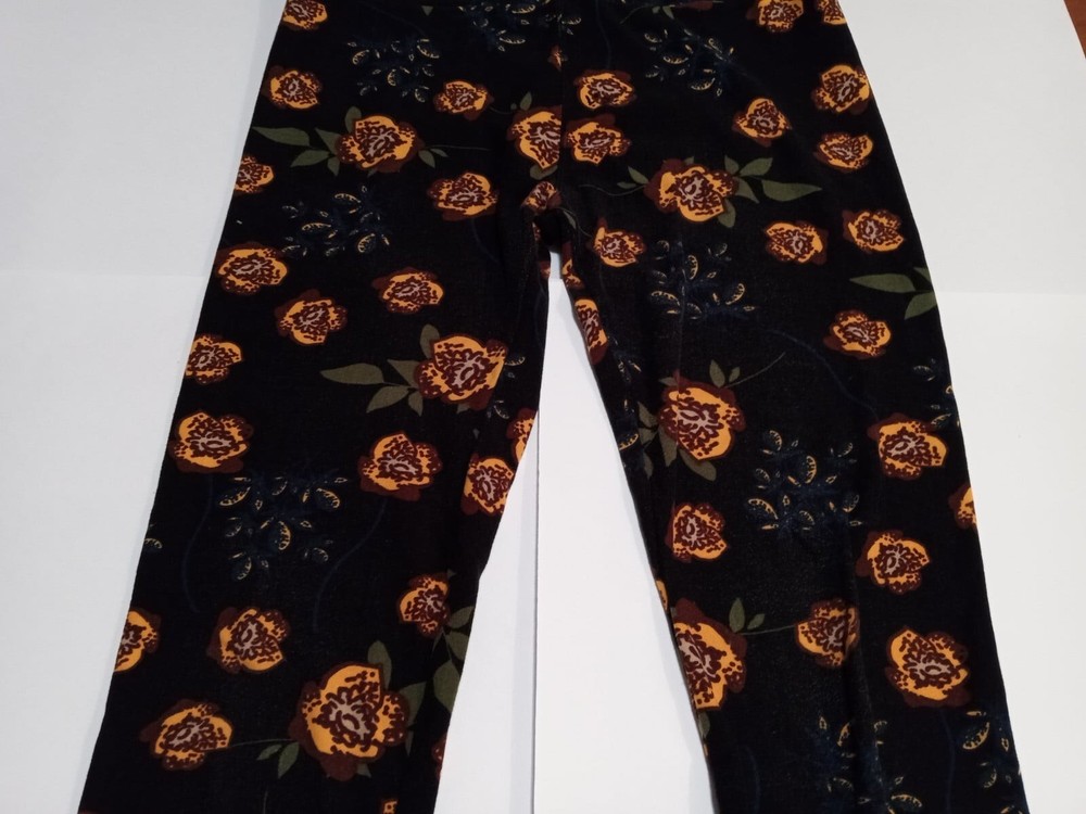 Elevate your wardrobe with these stylish LuLaRoe leggings. The black and orange floral pattern adds a touch of feminine grace to any outfit. The mid-rise design offers a flattering fit, while the soft and stretchy blend of polyester and spandex ensures comfort all day long. These leggings are perfect for any woman looking to add a pop of color and style to her wardrobe. The one size fits all design makes them easy to wear and share, while the 26.5 inch inseam and 25 inch waist size guarantee a comfortable fit. Don't miss out on the chance to own these beautiful leggings that are sure to become a staple in your wardrobe.