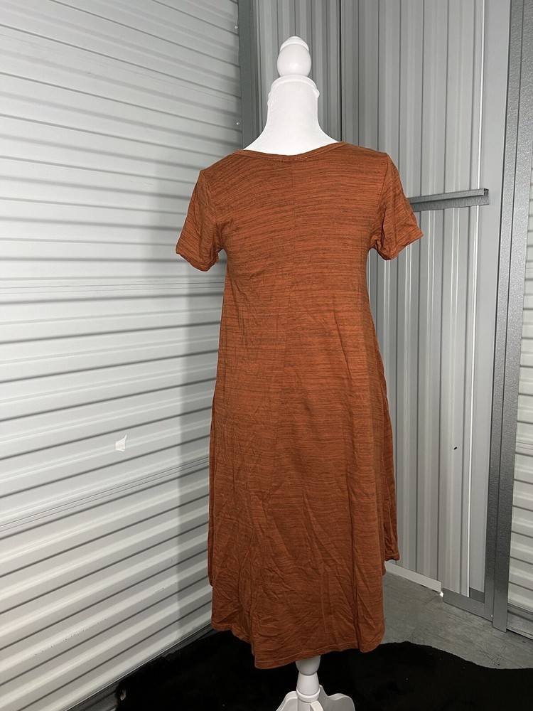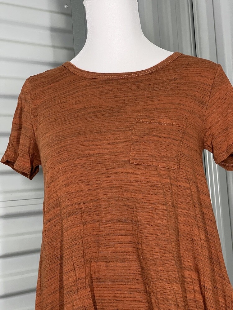 This amazing and elegant T-shirt dress is a perfect fit for you. The dress is from LuLaRoe and is made from the best quality material. The beautiful orange color of the dress gives it a unique look, making it stand out in any event. It is a knee-length dress that comes in size XXS, which is perfect for women who want to look classy and stylish. The dress has a high-low hemline that makes it look more elegant. It is a perfect dress for any occasion, be it a party, wedding, or any other event. So, if you want to look your best, this is the perfect dress for you. NWOT Laying flat Size- XXS Chest-15in Length-30in-36in Stretchy Any and all questions please ask before purchasing. I am always here to help. I hope you’re having a wonderful day thanks for shopping with me.