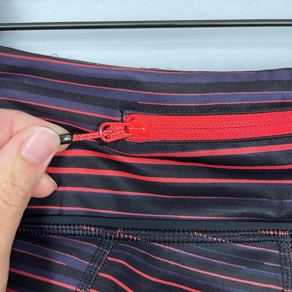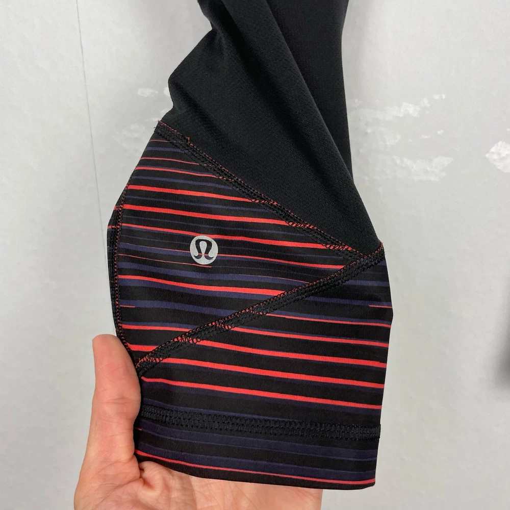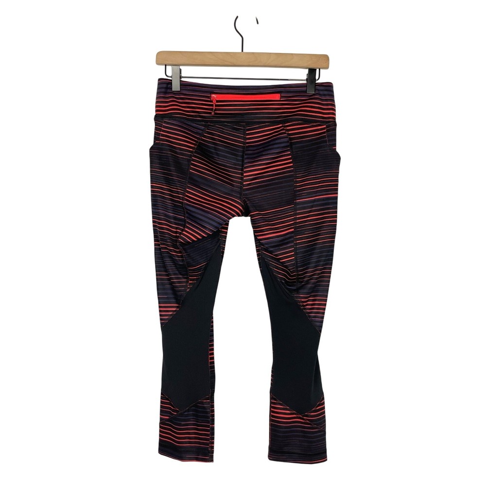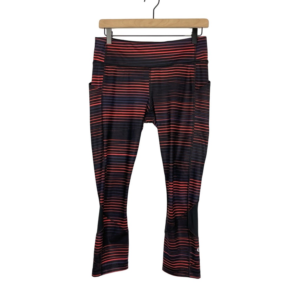<![CDATA[<div>With strategically placed Mesh fabric panels and ample storage for essentials, these crops have us covered from hill training to boot camp. Size: 6 Color: Twisted Dune Alarming Black / Black Style #: W6F85S -Full-On® Luxtreme fabric is sweat-wicking and four-way stretch with added Lycra® fibre for great shape retention -Mesh fabric panels keep air flowing -Stash keys, cards or your phone in low-bounce pockets -Signature three-pocket waistband -Hugged Sensation -Designed for run & cross-training Preowned No flaws Waist: 14.5” Rise: 9” Inseam: 22” Lululemon Pace Rival Twisted Dune Striped Luxtreme Mid Rise Cropped Leggings