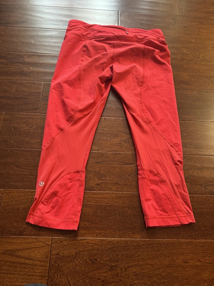 Lululemon Women's Crop Mid Rise Orange Salmon Legging Size 8. Condition is Pre-owned. Shipped with USPS Ground Advantage....