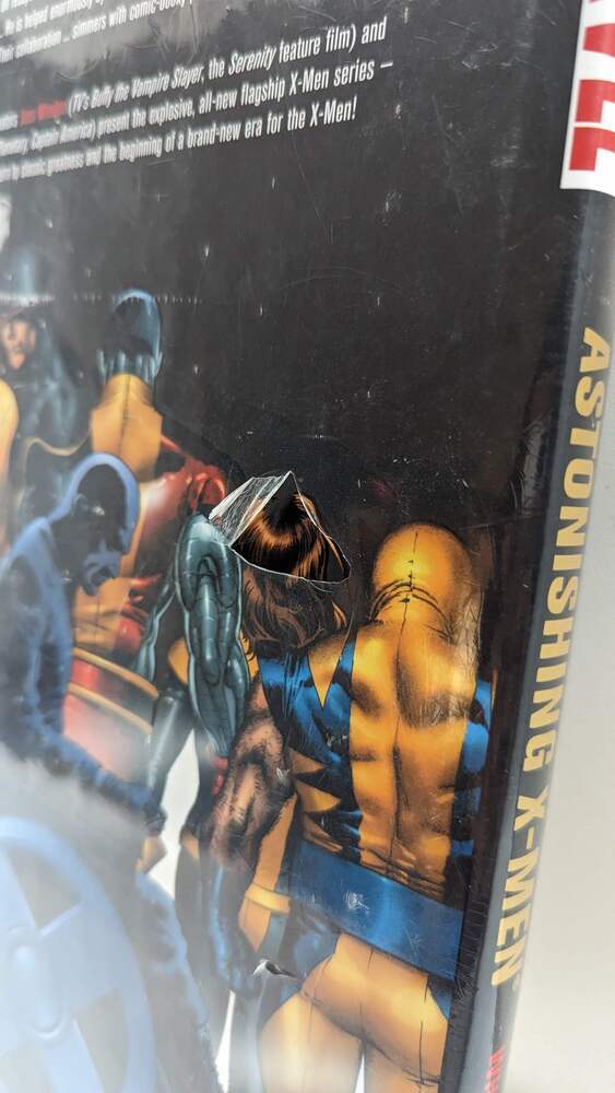 Absolutely thrilled with this hardcover! Joss Whedon's Astonishing X-Men run is a must-have, and this copy is pristine—barely any wear, unread, just like new. The minor tear is barely noticeable, and the pages are crisp. Rare find in such great condition! Perfect for any Marvel fan or collector. Fast shipping, great seller!
