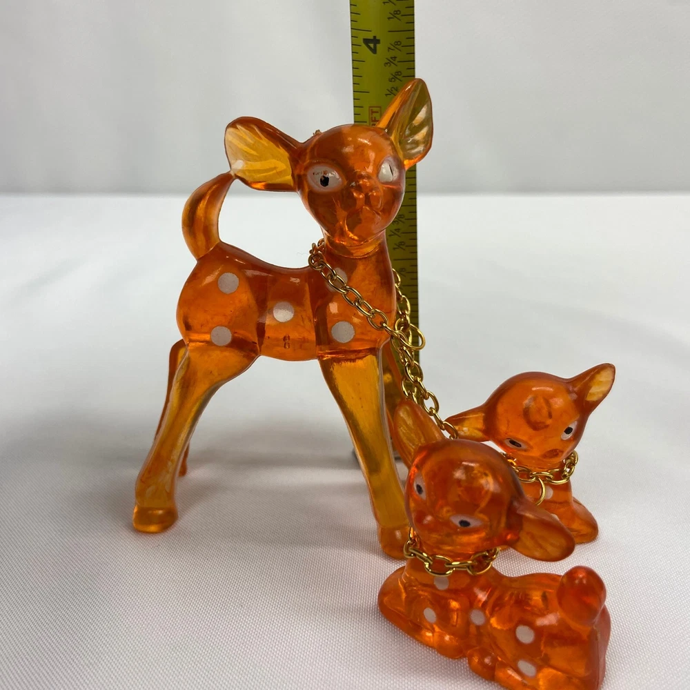 Absolutely love this adorable deer set! The vibrant amber-orange color is stunning, and the detailing on the mama and baby deer is so lifelike. Perfect for collectors or as a charming decor piece—high-quality plastic with a nice weight to it. Made in Hong Kong adds a unique touch. A must-have for any deer lover!
