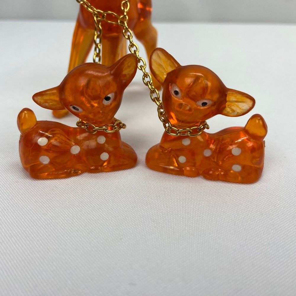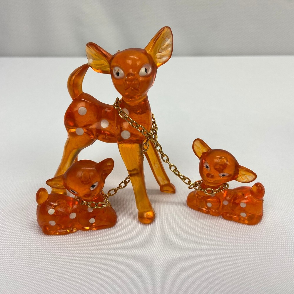 MCM Amber Orange Deer Plastic Doe & Fawn 3 Piece Set Made in Hong Kong Mama Baby...