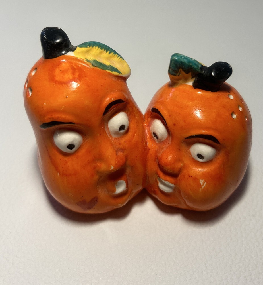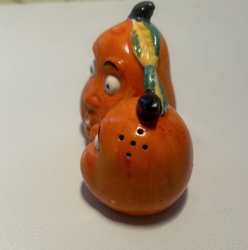 Anthropomorphic Gourd / Orange One Piece Kitsch Combined Salt And Pepper Shaker. Condition is Used. Shipped with USPS Ground Advantage.
