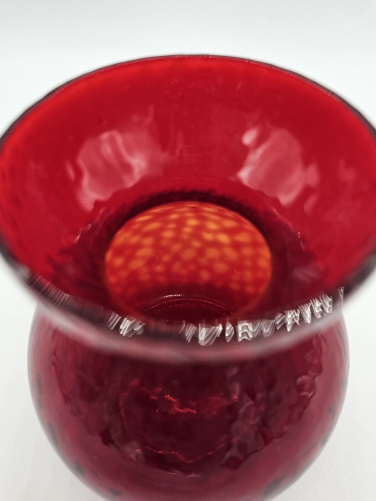 Condition is used. Shipped with USPS Ground Advantage. Stunning honeycomb texture blown glass hyacinth vase from Holmegaard Fyens Glasvaerk, the Kastrup vase in red & orange! This beautiful Scandinavian glass from the 1960’s is memorizing to look through! Perfectly designed for bulb forcing or displaying blooms on any table! Excellent condition! Measures: 4½"x4" Scrapes and scuffs are normal with age. Item is vintage. No chips cracks or crazing. Please refer to all pictures. I will gladly answer all questions