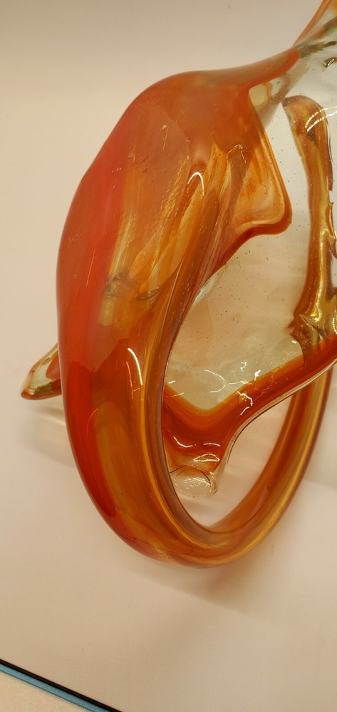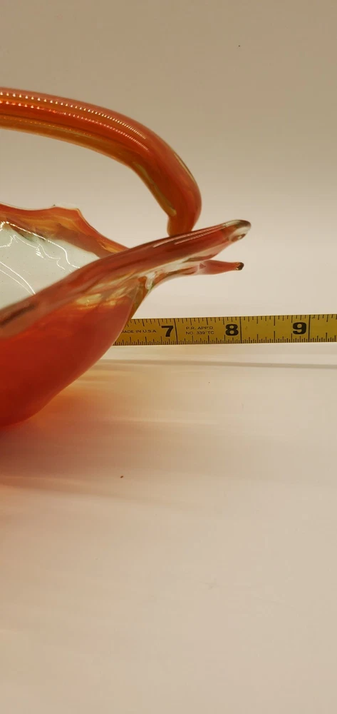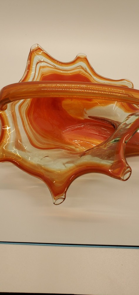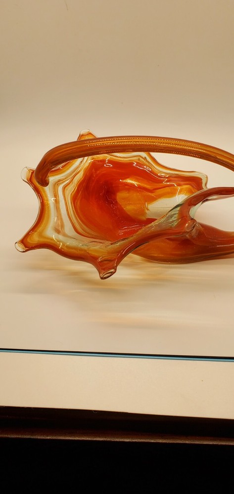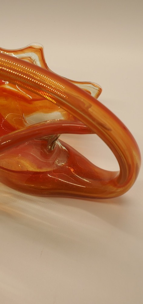 This beautiful, one-of-a-kind hand blown glass bowl features a stunning orange swirl pattern that will add an artistic touch to any collection. The bowl is made of high-quality glass material and is an original piece from the mid-century modern era. Whether you're a vintage collector or simply looking for a unique decorative piece, this bowl is perfect for any occasion. Its production technique involves hand blowing, making it a rare find. Purchase this bowl for yourself or as a gift for someone special.