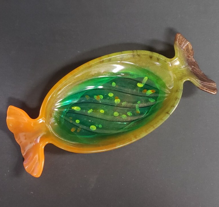 MCM Vintage Resin Candy Shaped Dish Trey Multi Color Orange Retro.