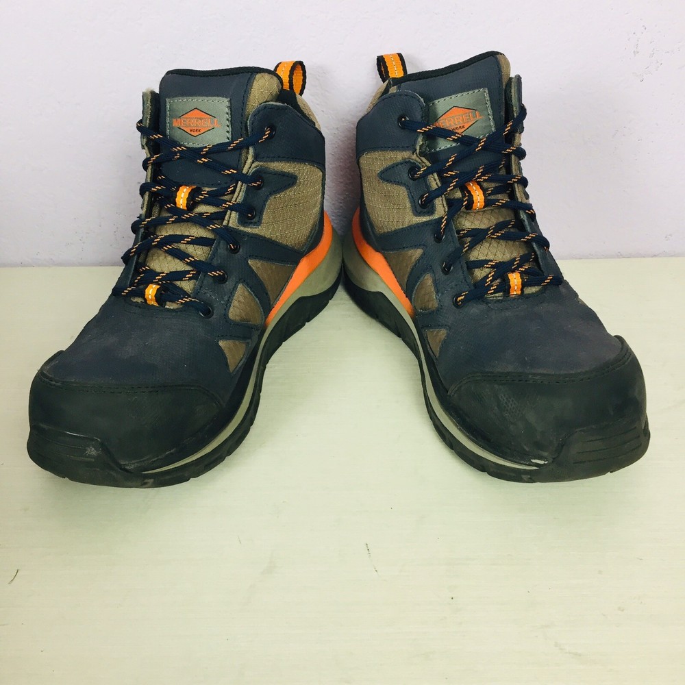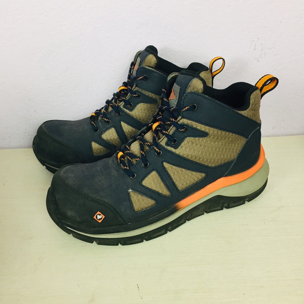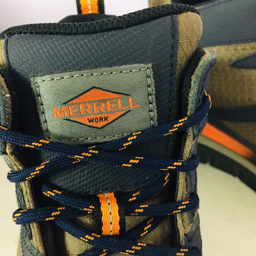 MERRELL Work Men's Boots Features: * Brand: MERRELL * Style: Work Fullbench Speed Mid * Style Code: J003321 * Mid Top * Hard Toe * Color: Black and Safety Orange * Insole: Foam * Lace Up * Size: US 6 ...