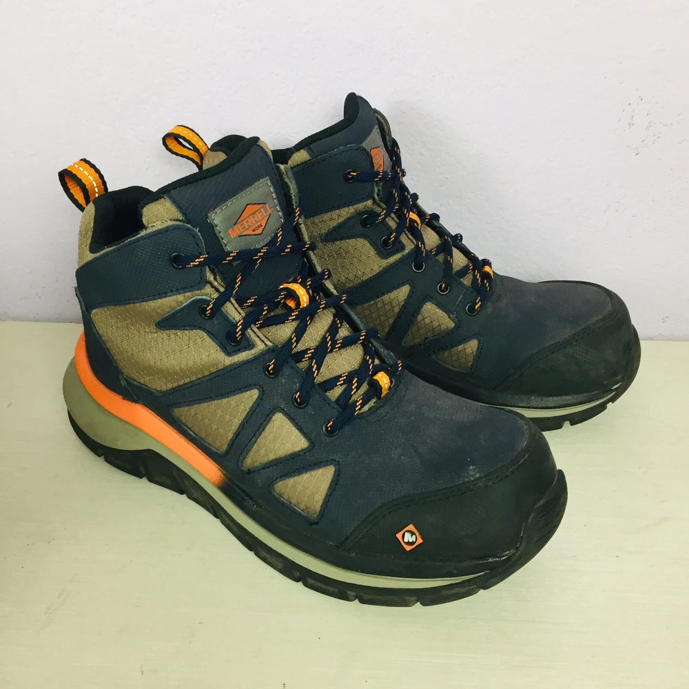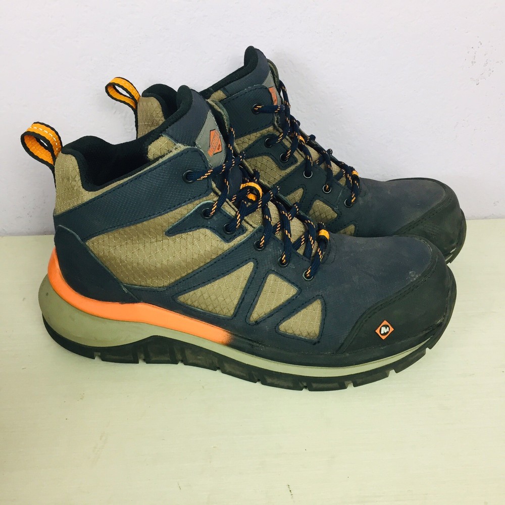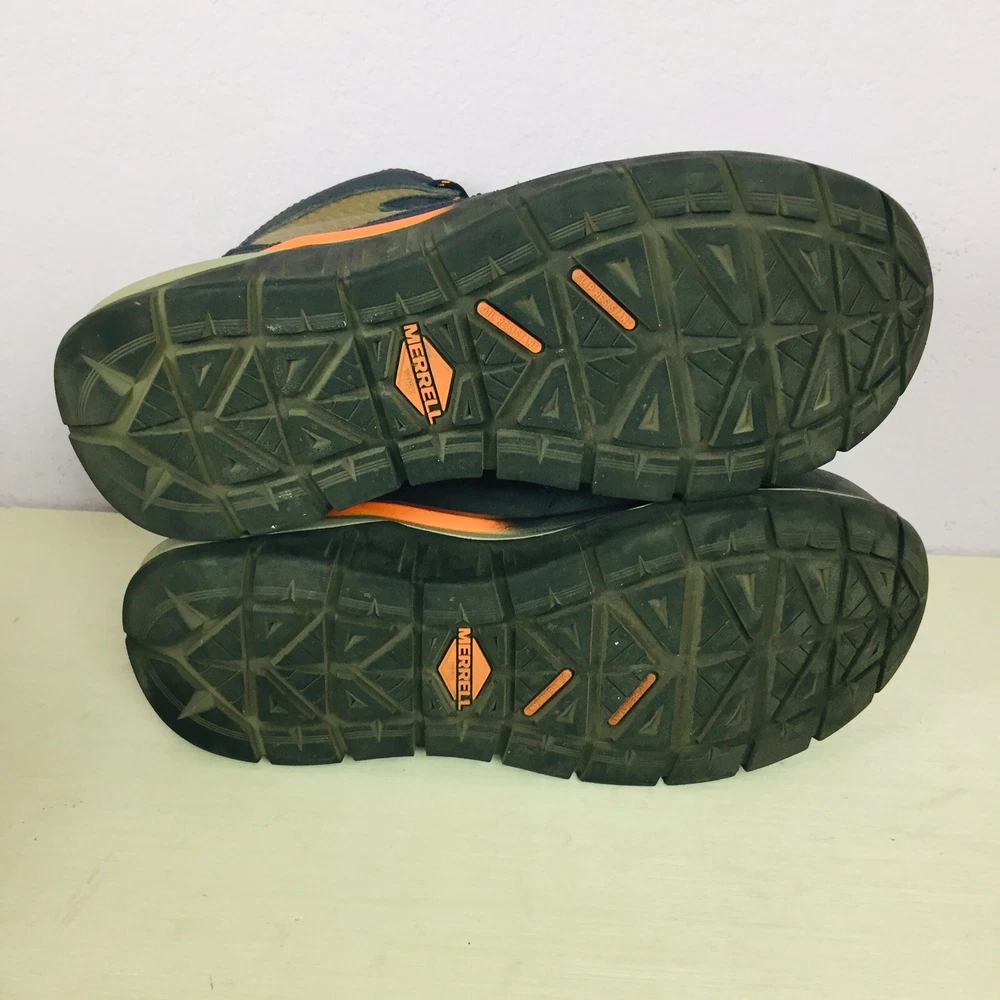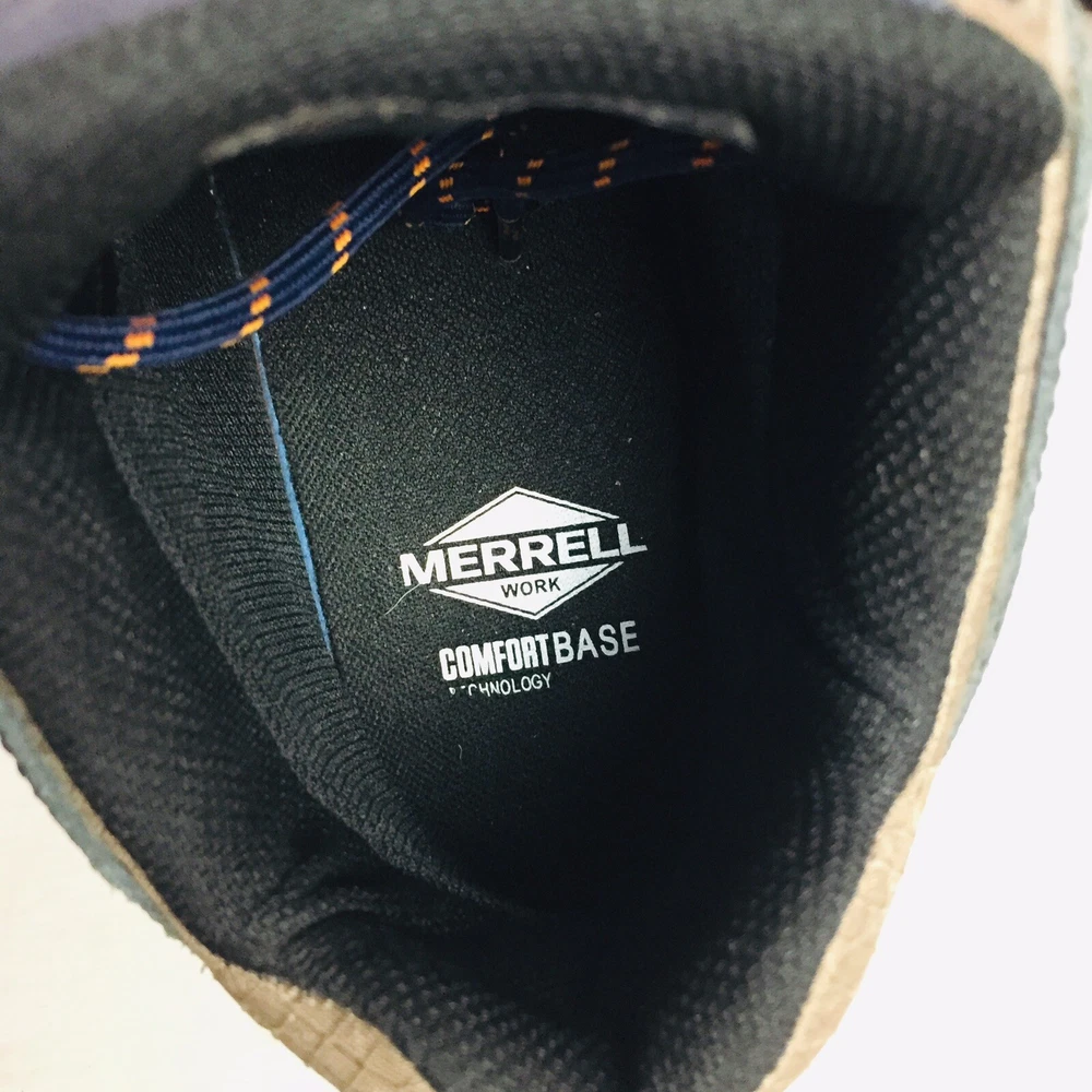 MERRELL Work Men's Boots Features: * Brand: MERRELL * Style: Work Fullbench Speed Mid * Style Code: J003321 * Mid Top * Hard Toe * Color: Black and Safety Orange * Insole: Foam * Lace Up * Size: US 6 ...