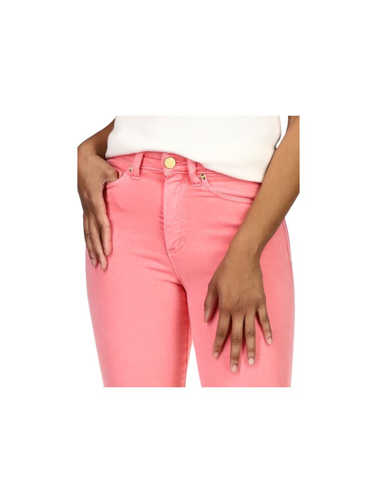 Love these cropped jeans! The coral logo hardware adds a chic touch, and the fit is perfect—comfortable yet stylish. The cotton blend feels great, and the zippered back pocket is a cool detail. Easy to pair with anything, and the quality is amazing for the price. Definitely worth it!
