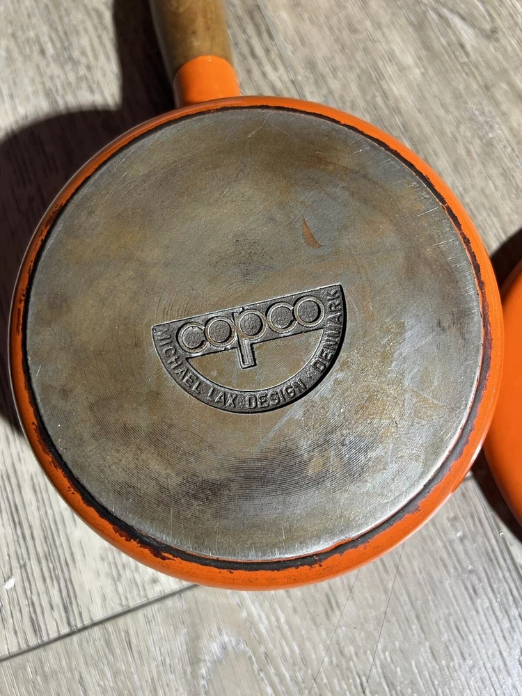 MID CENTURY COPCO DENMARK DESIGN MICHAEL LAX CAST IRON ORANGE. Condition is Used. Shipped with FedEx Ground or FedEx Home Delivery....