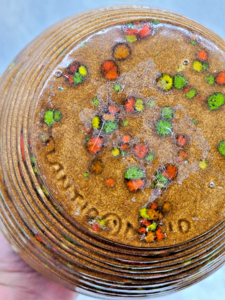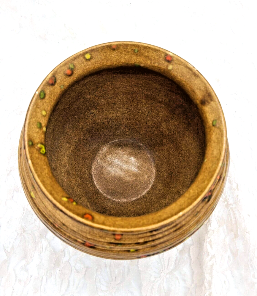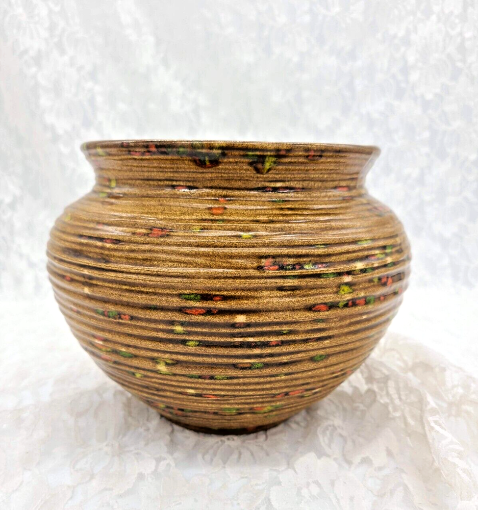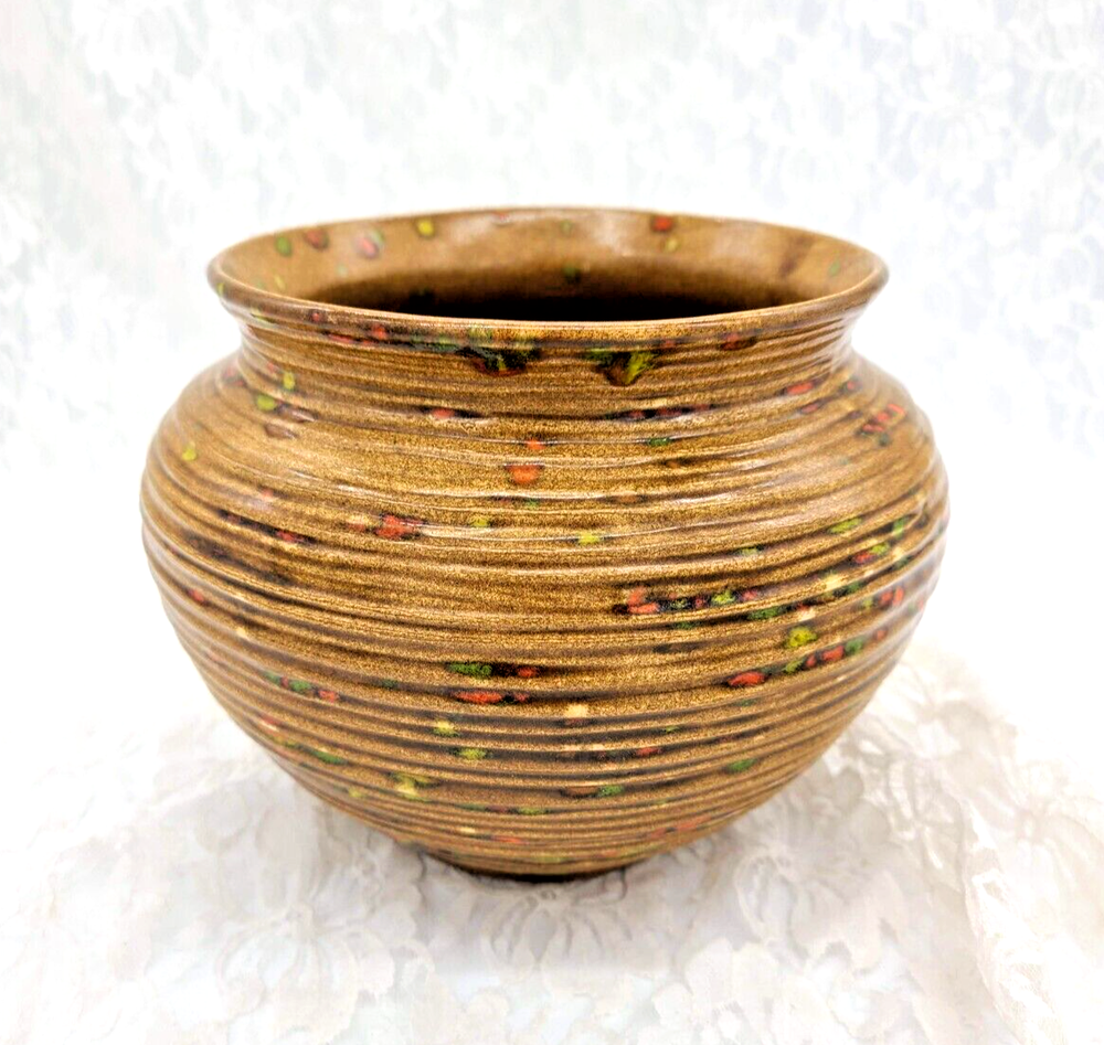 This eye-catching, MID CENTURY MCM bowl planter from Atlantic Mold is a vibrant, speckled party for your eyes! With its zesty orange, green, and yellow tones, it's sure to brighten up your abode! Its got that speckled drop glaze thing going for it and its really fine-walled, not thick like you'd expect from art pottery, its got thinner walls that feel more like a piece of art. This is an amazing ATOMIC piece I'd say it was from the mid 50s to the early 60s. Size is 5" tall and 11" wide, never been used as a planter, this was on display in a home that had not been touched for decades. MID CENTURY MCM Bowl Planter Atlantic Mold Ceramic Speckled Orange Green Yellow