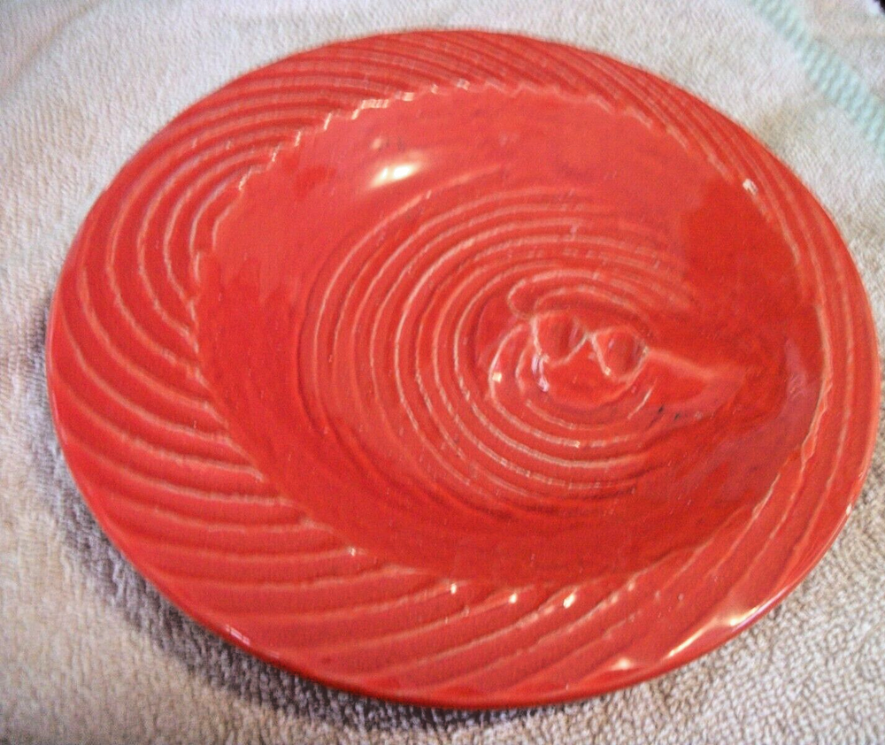 A MID CENETURY MODERN BRIGHT ORANGE POTTERY ASHTRAY 7 INCHES WIDE MADE IN THE USA CAN NOT SHIP ON WEEK ENDS...