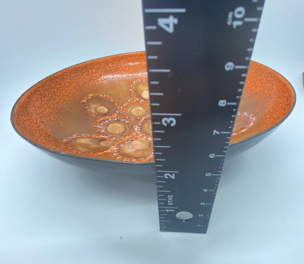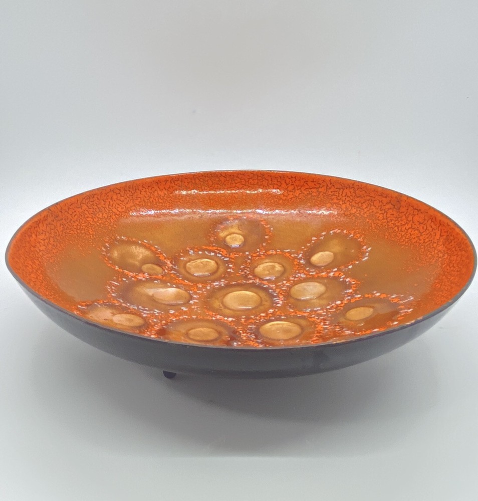 What a great looking enamel bowl to hold your candy or special trinkets. SO STUNNING! This Mid-Century Vintage Enamel Footed Bowl is quality-made and has a distinctive artsy vibe. The enabled feet on this add flair and balance to the bowl. This previously-owned bowl is in excellent condition with no damage or unusual aging wear. WHAT A GREAT PRICE! Minor scrapes and scratches. See photos. Shipped by USPS Priority Mail or FedEx, based upon market/item considerations. We can usually save you money on combining items for shipping, so if you are purchasing multiple items please PUT THE ITEMS IN YOUR CART AND THEN DO THE BUY IT NOW - then you can request an invoice BEFORE YOU CHECK OUT and we will send you one with the combined shipping discount. By checking out without an invoice you might be paying more than you should. Please understand that I am not an expert in any collecting field and I am using more general terms and standards in referring to the items up for auction. I try to accurately assess the condition of each item. I get my description information through research and other collector's opinions. All descriptions are for informational purposes only. PLEASE LOOK CAREFULLY AT ALL OF THE PHOTOS AS THEY ARE PART OF MY DESCRIPTION. EMAIL ME IF YOU HAVE ANY QUESTIONS OR WOULD LIKE ADDITIONAL PHOTOS. I TRY TO SHIP WITHIN 24 HOURS. I WILL ADD EXTRA INSURANCE AND OR SIGNATURE TO SHIPPING IF NEEDED. I WRAP AND PACKAGE ALL ITEMS CAREFULLY BEFORE SHIPPING, SO PLEASE UNWRAP ALL PACKAGING CAREFULLY, AS WELL. I STRIVE TO PROVIDE QUALITY PRODUCTS AND QUALITY SERVICE. I LEAVE FEEDBACK ONCE THE TRANSACTION IS COMPLETE. IF YOU ARE SATISFIED WITH THE SERVICE AND YOUR PURCHASE PLEASE LEAVE A POSITIVE REVIEW. CHECK OUT ALL OF THE OTHER WONDERFUL TREASURES ON THE SARA JANE WEBSITE, AND ADD US TO YOUR FAVORITES LIST.