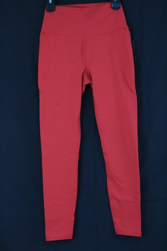 These leggings are amazing—super comfy, true to size, and the high-rise fit is perfect for workouts or lounging. The bright orange color is vibrant, and the material feels soft yet supportive. Great quality and brand new with tags—definitely worth it!