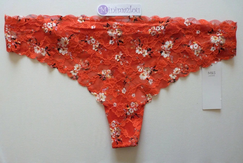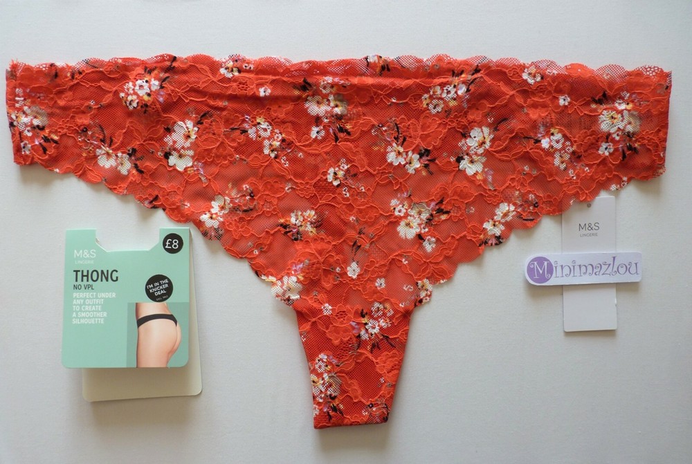 Thong By M&S Lingerie Size 22 No VPL (visible panty line) lace thong. Designed to be perfect for any outfit where a smooth finish is needed. Described as Flame in colour, this pretty orange underwear has a floral pattern throughout with scalloped trim to waistband. 100% cotton gusset. RRP: £8 Visit My eBay Shop: minimazlou '*~*' Happy to help with any questions, which you may have about this item of underwear or any of the items I have listed. Item will be dispatched the same working day if payment received before 3pm Mon - Fri. From a smoke and pet free environment. Thanks for looking